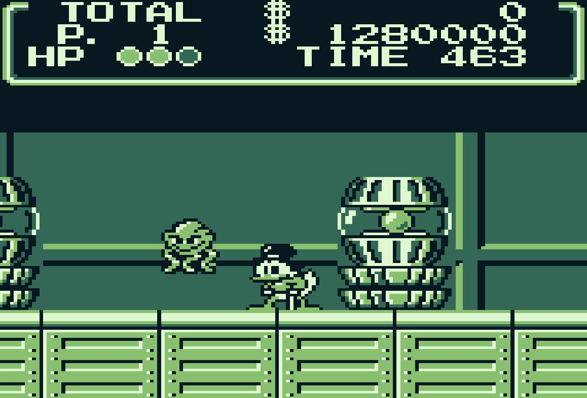 Im Game Boy Spiel führt ihn sein Vorhaben vom Amazonas nach Transsylvanien, über die afrikanischen Minen zum Himalaya und gar bis auf den Mond. Beginnend im Aztekenland schlagt ihr euch durch den Urwald oder besser gesagt: hüpft ihr durch den Dschungel, denn Dagoberts Spazierstock besitzt erstaunliche Pogofähigkeiten, die es ihm ebenso erlauben, sich nervigen Schlangen, Fliegen, Gorillas und Fleischfresserpflanzen zu entledigen. Quack der Bruchpilot stattet euch mit seinem Hubschrauber einen Besuch ab, wo immer ihr nicht über eine größere Distanz zum nächsten festen Boden kommt. Weiter im Dschungel bewegt ihr euch über einsturzgefährdete Brücken und klettert Lianen hinauf bis tief in den Aztekentempel, an dessen Ende euch eine böse Gottheit erwartet. Zeigt dieser was in euch steckt und sammelt euren ersten 1.000.000$ Schatz ein: ein geheimnisvoller Aztekenstab.