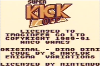 Super Kick Off (veröffentlicht 1991) lässt euch ungläubig auf den kleinen Spielbildschirm schauen. Was hier geboten wird ist zwar annehmbar, durch die bescheidene und schnörkellose Grafik und die starre Vogelperspektive auf das Spielfeld und ohne Sounduntermalung mit Ausnahme des Ballgeräuschs, wirkt allerdings jeder Modus langweilig und motivationslos. Das Spiel bietet einen Übungsmodus in dem ihr euer Geschick testen sowie am Elfmeterschießen teilnehmen könnt. Im Einzelspielmodus habt ihr die Möglichkeit die Spieleraufstellung auszuwählen und entscheidet euch ob ihr lieber das Spielfeld „runter“ oder „rauf“ spielt. Im Internationalen Spiel stehen acht Nationen zur Verfügung – im Endeffekt unterscheidet sich das Einzelspiel aber nicht vom Internationalen. Unter dem Modus Spiele wählt ihr Liga, Pokal oder den Europokal aus. Weitere Einstellungen lassen sich bei der Windstärke, der Spielgeschwindigkeit und beispielsweise bei der Dauer der Halbzeit vornehmen.