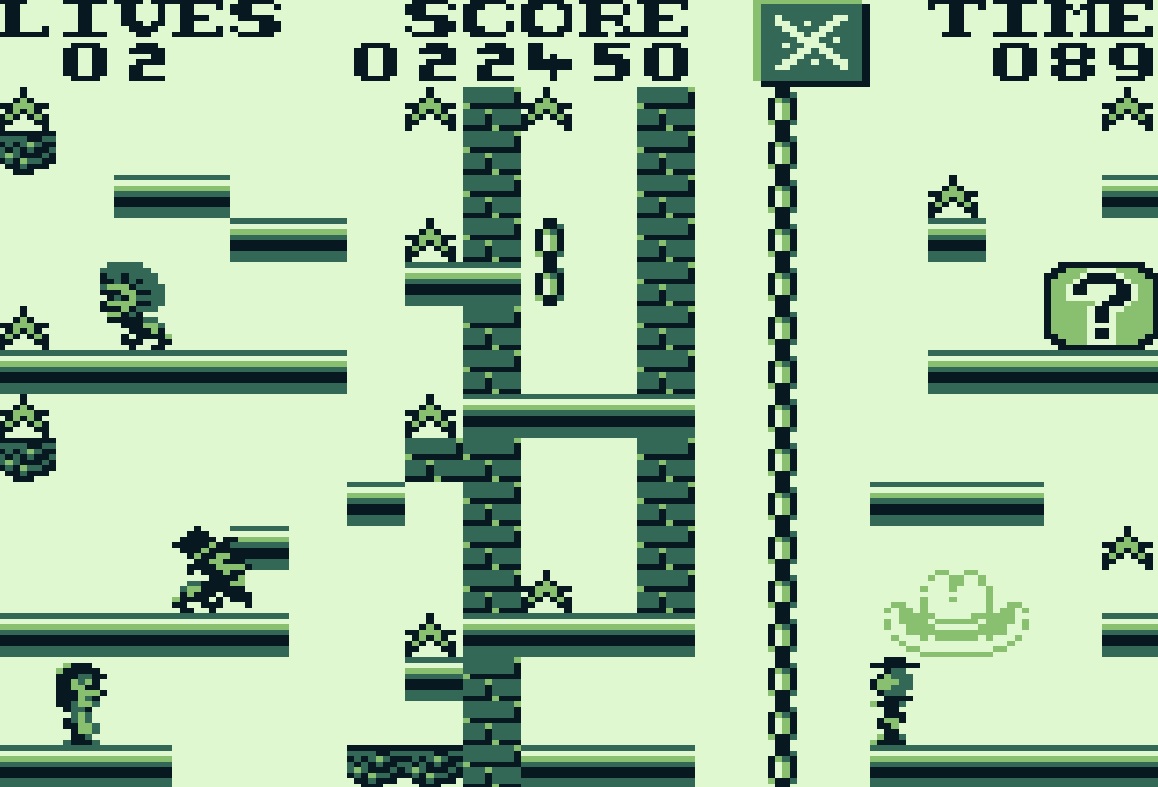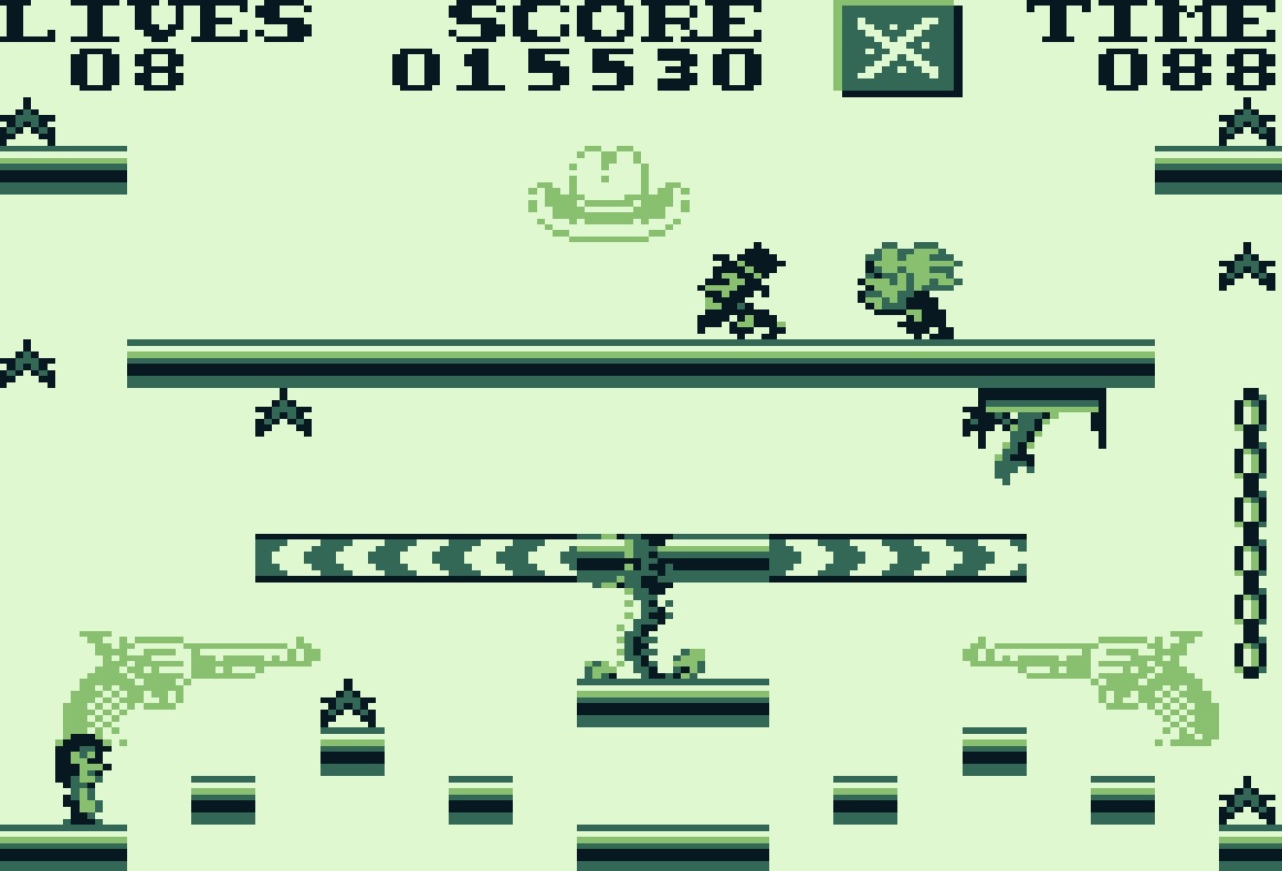 Eine verdammt abenteuerliche Reise, Hoschi. Toll, wie wir Abraham Lincoln, Jeanne d’Arc, Einstein, Beethoven und viele weitere Persönlichkeiten der Geschichte kennengelernt haben. Die sind ja alle wirklich sehr nett – im Game Boy Spiel gelten sie allerdings als Feinde die euch zwar nicht erledigen, aber ungünstig durch die Gegend befördern. Passt besonders auf offenes Feuer und Billy the Kid auf: Der wildgewordene Cowboy ballert alles nieder was sich ihm in den Weg stellt.
