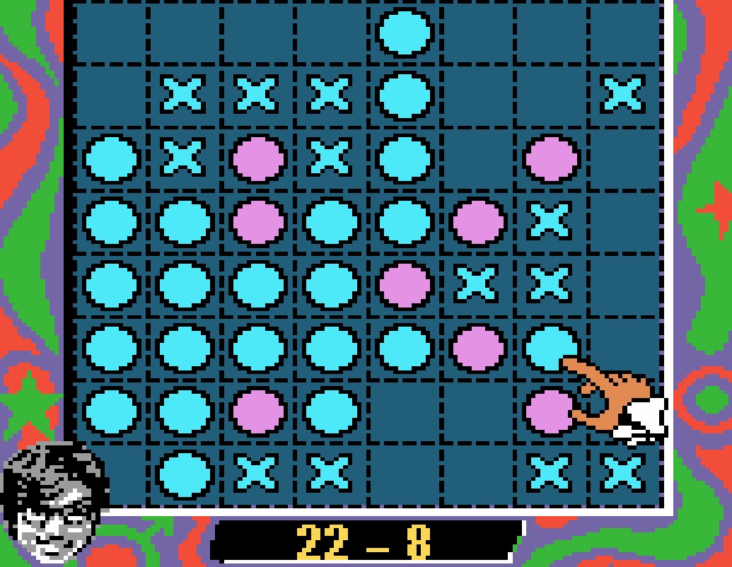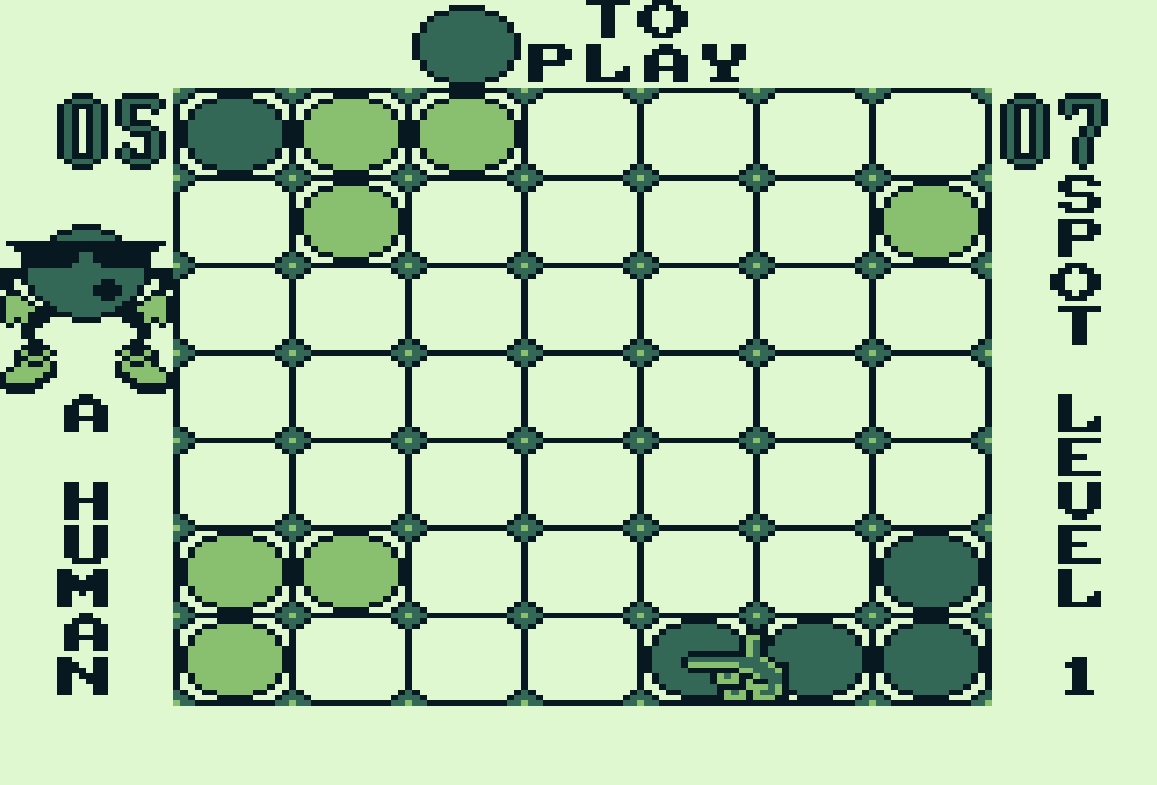 Die bekannteste Othello-Version dürfte hierzulande das gleichnamige Game Boy Spiel von 1991 sein. Diese Version bietet diverse Einstellmöglichkeiten die uns das Spiel unter anderem plausibler macht: Im Editiermodus können wir direkten Einfluss auf das Spielgeschehen nehmen – so zum Beispiel die Spielsteinfarbe ändern oder auch die letzten Züge rückgängig machen. Wir lernen dabei aus unseren Fehlern und verstehen die Systematik die hinter Othello steht. Um das Spiel zu beenden müssen vier Computergegner bezwungen werden. COM4 ist hierbei der absolute Othelloprofi – ihn zu schlagen erfordert vertiefte taktische Kenntnisse. Legt man vor Spielbeginn allerdings ein Zeitlimit fest, schaffen es die Gegner kaum ihre wahren Stärken auszuspielen. Das Spielbrett ist grafisch sehr schön umgesetzt – leider fehlt eine Anzeige die den aktuellen Stand der Anzahl der Steine wiedergibt.