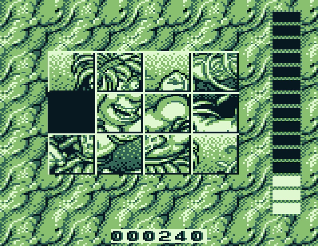 32 Bilder wollen in vier verschiedenen Schwierigkeitsgraden absolviert werden. Um das Spiel etwas spannender zu gestalten und uns vom gnadenlos ablaufenden Countdown abzulenken, tauchen ab und an auf dem Schiebebild diverse Gimmicks wie Bomben, versteckte Fallen, Bonuszeit etc auf. Zumindest wenn man vorher den normalen Modus gewählt hat – zur Auswahl steht auch der „Spiele gegen die Uhr“ Modus. Hier verzichtet der Game Boy auf sämtliche Möglichkeiten uns das Spiel noch schwerer zu machen als es ohnehin schon ist.