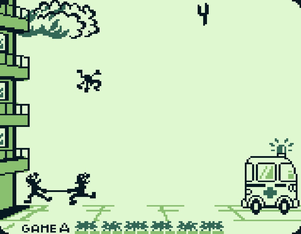 Bei Fire steuern wir zwei Sanitäter die ein Sprungtuch spannen um damit die Leute aufzufangen, die aus einem brennenden Haus springen. Hier gilt es die Abstände des Aufschlagortes zum Krankenwagen abzuschätzen. Gegebenenfalls legen die Personen noch einen gemeinen Extra-Salto ein der mit einkalkuliert werden muss. In der modernen Version des Spiels steuern wir Mario und Luigi die aus einem Burgturm springende Diddy Kongs und Toads in eine Kutsche befördern müssen.