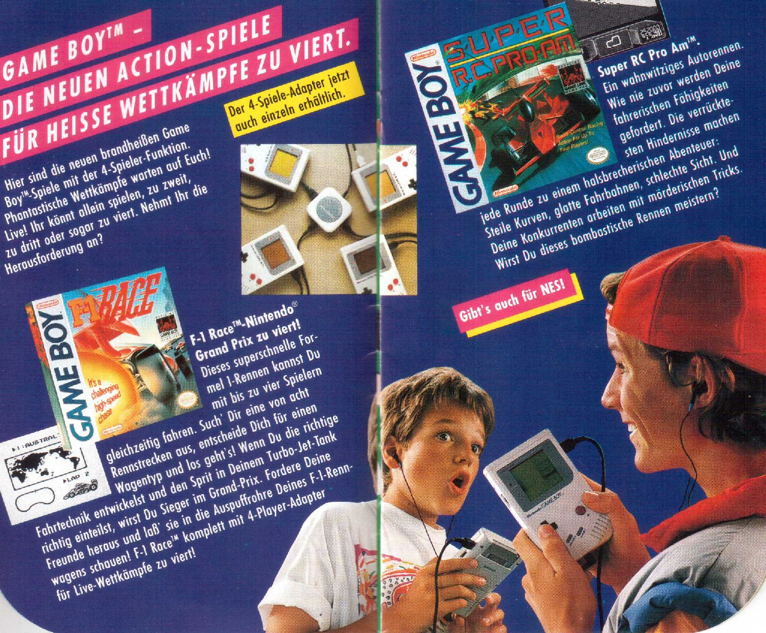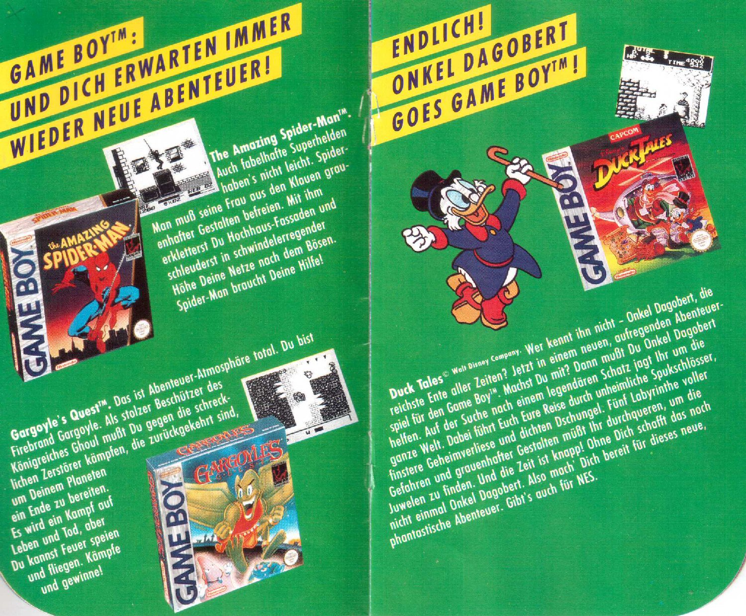 (pwc) Man kommt aus dem Staunen gar nicht mehr heraus: Game Boy – auch für Erwachsene! Action und Superspannung. Jederzeit und überall spielbereit. Die neuen Action-Spiele für heiße Wettkämpfe zu viert. Die brandheißen Hits aus der Action-Welt von Nintendo. Game Boy: und dich erwarten immer wieder neue Abenteuer! Endlich! Onkel Dagobert goes Game Boy! Game Boy: Und die Top-Power-Spiele für Spannung pur! Dein ganzes Können ist gefragt etc.