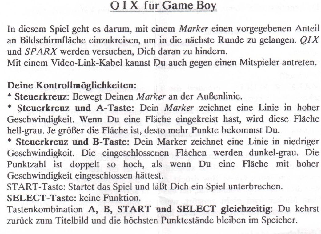 Heute möchte ich einen solchen Zettel vorstellen, der meiner US-Version von QIX beilag.