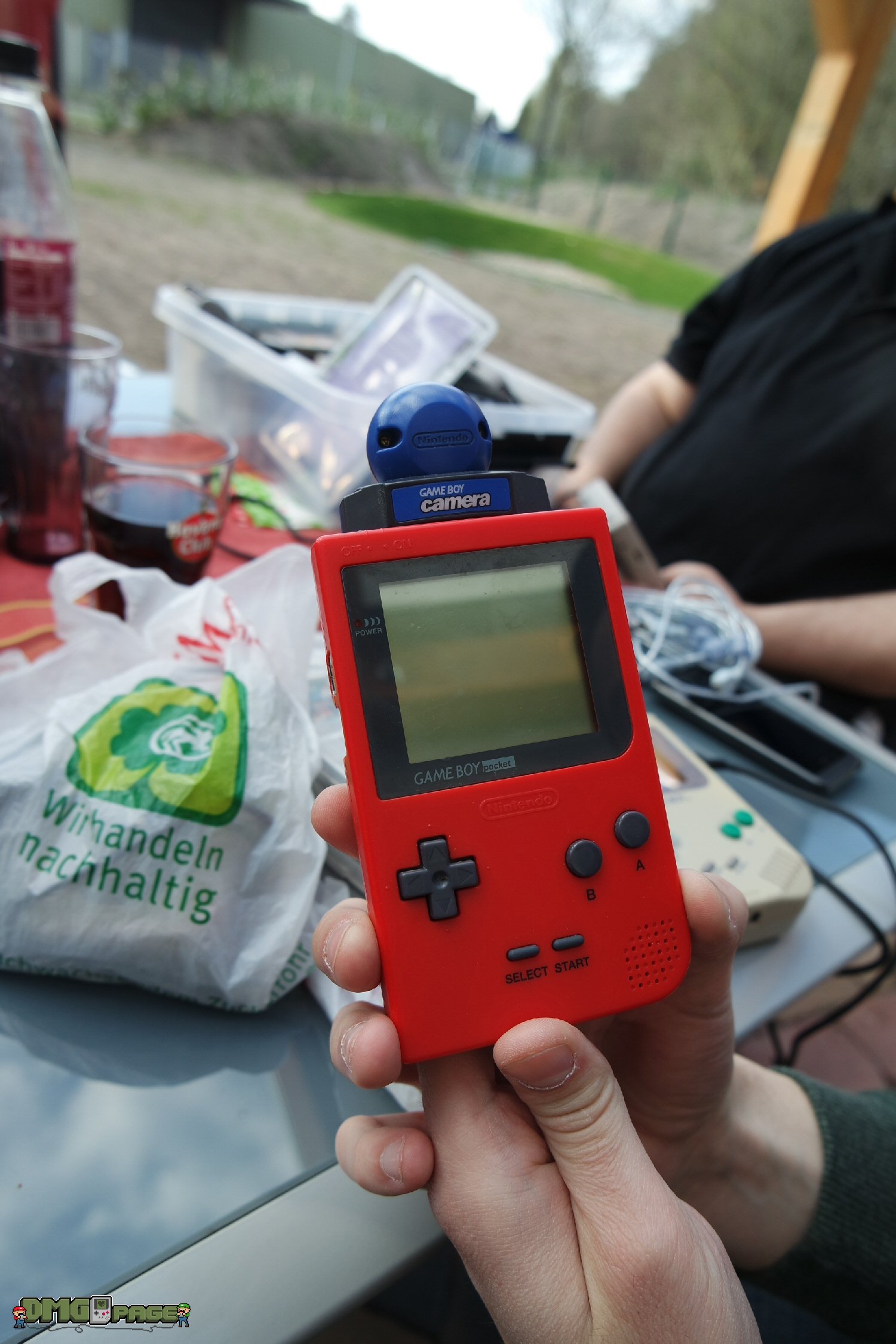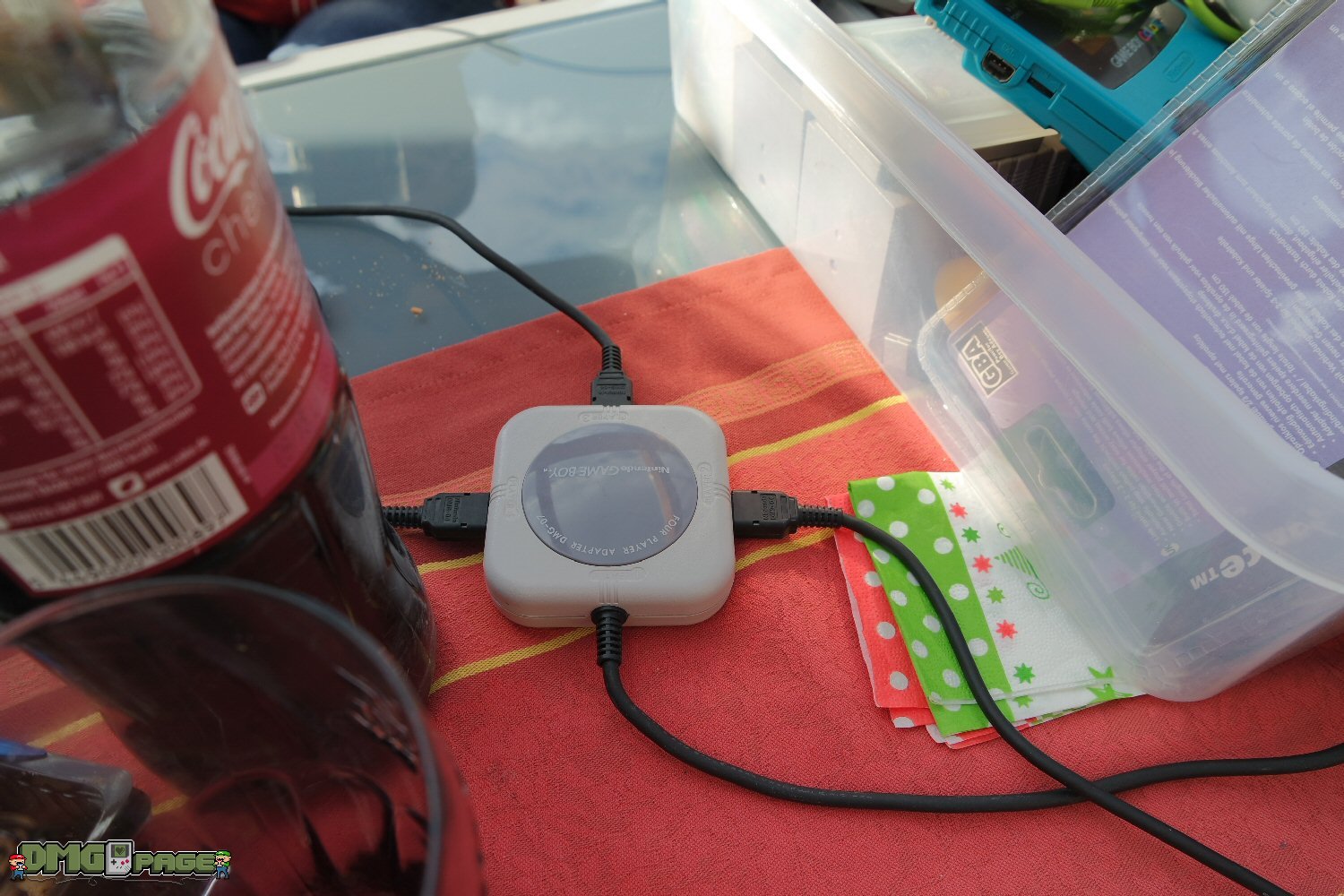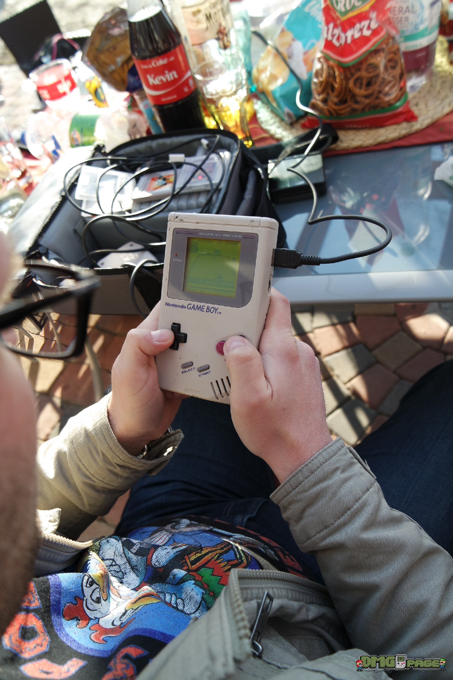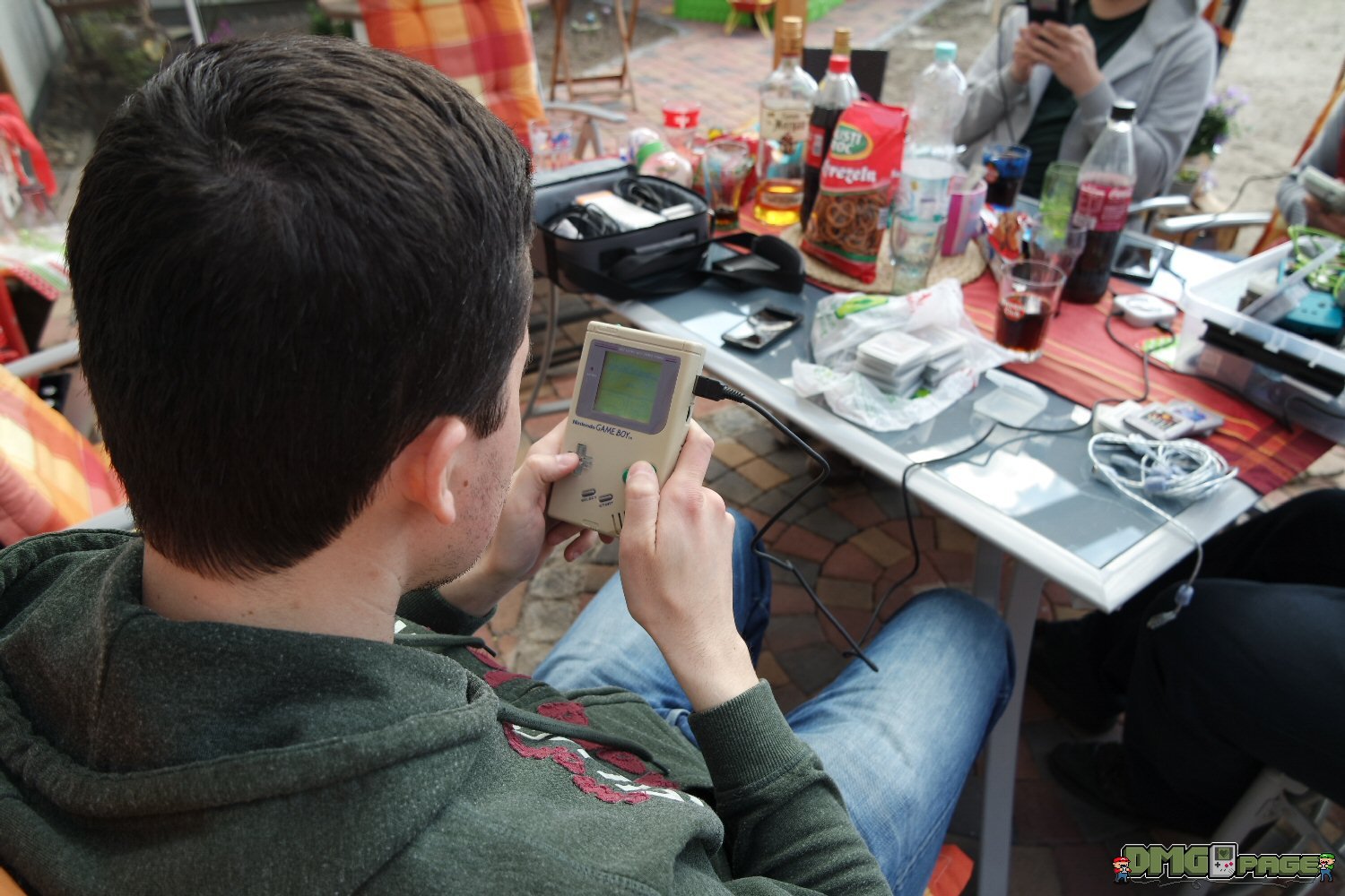 Nach der obligatorischen Begutachtung der wirklich mehr als bemerkenswerten Videogames- und Merchandising-Sammlung, ging es draußen auf der Terrasse bei strahlendem Sonnenschein direkt mit der Action los der wir nunmehr seit Jahren sehnsüchtig entgegengefiebert haben: dem Multiplayerzocken auf dem klassischen Game Boy zu viert über den 4-Player-Adapter.