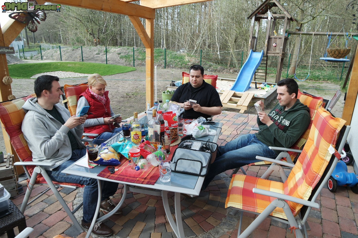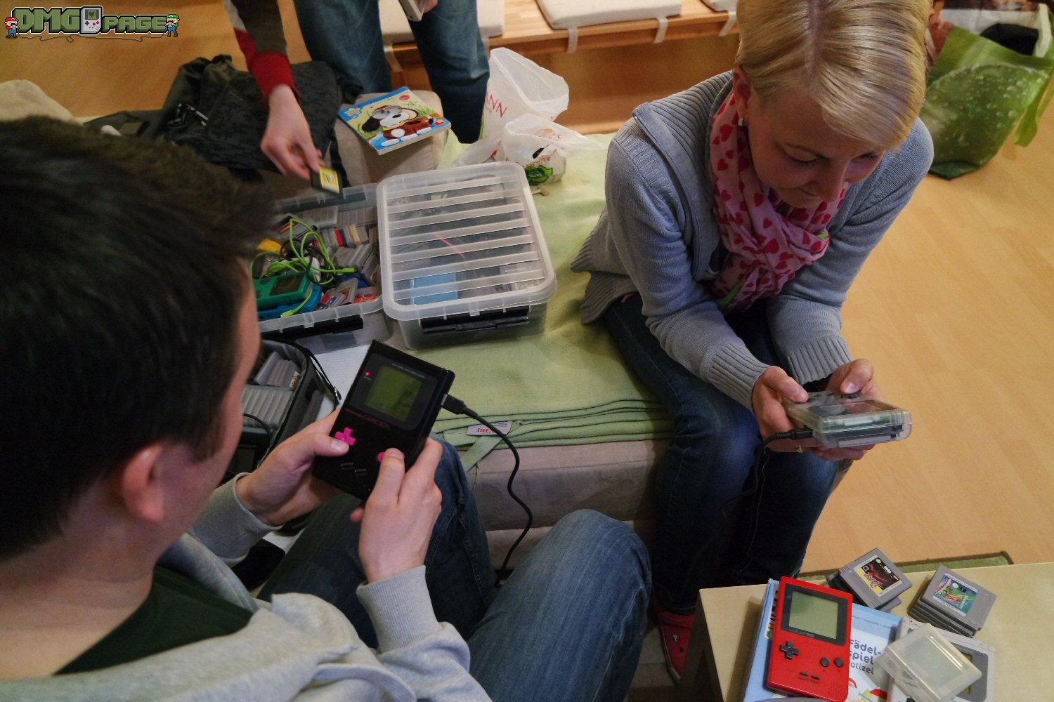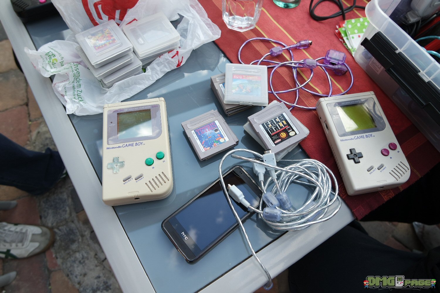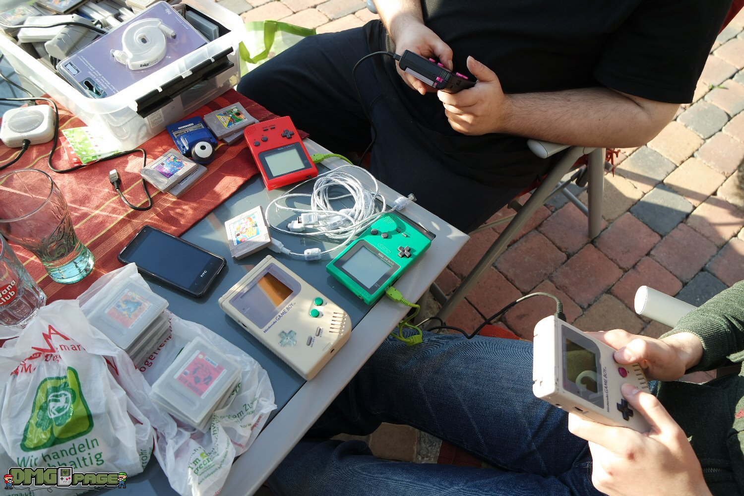 Nach der obligatorischen Begutachtung der wirklich mehr als bemerkenswerten Videogames- und Merchandising-Sammlung, ging es draußen auf der Terrasse bei strahlendem Sonnenschein direkt mit der Action los der wir nunmehr seit Jahren sehnsüchtig entgegengefiebert haben: dem Multiplayerzocken auf dem klassischen Game Boy zu viert über den 4-Player-Adapter.
