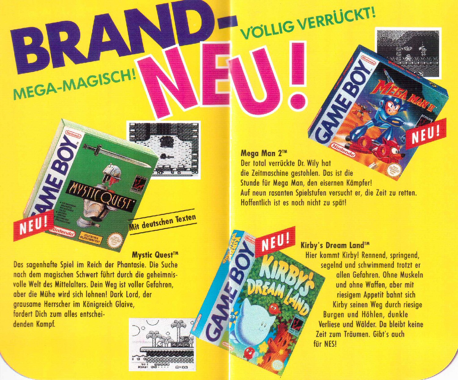 Zugegeben: Die kurzen Texte zu den Game Boy Spielen sind nicht wirklich super geschrieben – doch welche(r) 11jährige stört sich schon an Texten, wenn die Broschüre mit plakativen Headlines und üppigem Bildmaterial nur so trotzt? ^^