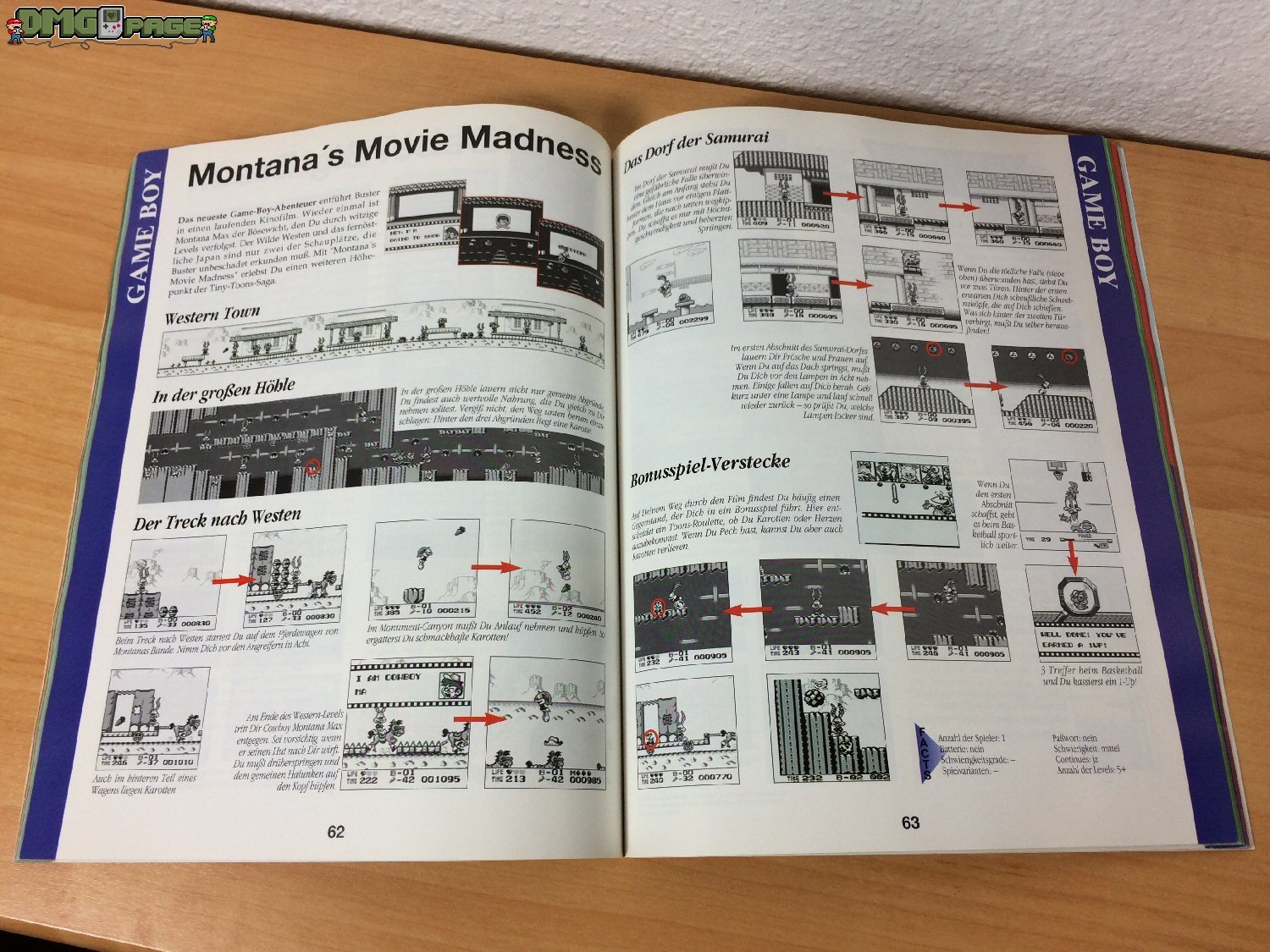 Obwohl sich die Spieleauswahl im KONAMI Games-Guide wirklich sehen lassen kann, haben mich die Tipps & Tricks nicht wirklich begeistert. Als Negativbeispiel möchte ich hier Tiny Toon Adventures Montana’s Movie Madness herausstellen. Dessen Kartenmaterial endet noch vor dem zweiten Endboss – also genau der Stelle an der ich bisweilen verzweifle und scheitere. Hier hätte ich mir zumindest den Hinweis gewünscht, welche Taktik man am besten anwendet ohne Gefahr zu laufen von Samurai-Max erwischt zu werden.
