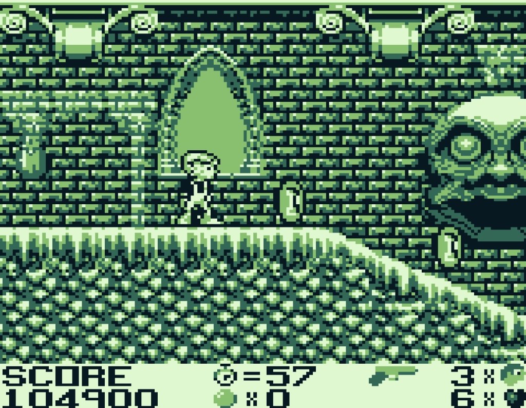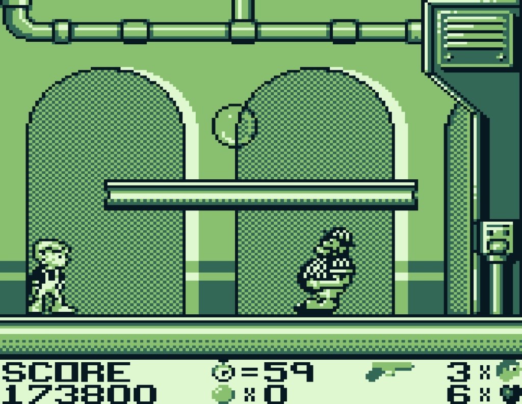 Von der Handlung des Films weicht das Game Boy-Spiel leicht ab. Im Vordergrund steht das Ziel, Mr. Wilsons Münzen zu finden und schlussendlich natürlich Switchblade Sam zu besiegen. Um alle Münzen ausfindig zu machen, steuern wir Dennis durch sechs verschiedene Level. Das Spiel startet in Mr. Wilsons Haus – hier finden wir zwar die ersten Münzen, allerdings sind diese nicht gerade wertvoll und müssen nicht unbedingt eingesammelt werden, um das Level abzuschließen. Anders verhält es sich in den kommenden Leveln: Jeweils vier Münzen, die mit einem X gekennzeichnet sind, gilt es zu finden – erst dann ist der Weg frei zum nächsten Level. Haltet unbedingt die Zeit im Auge. Dummerweise hat Mr. Wilson die Haustür verschlossen. Der Schlüssel allerdings liegt irgendwo gut versteckt im Haus und muss erst gefunden werden.