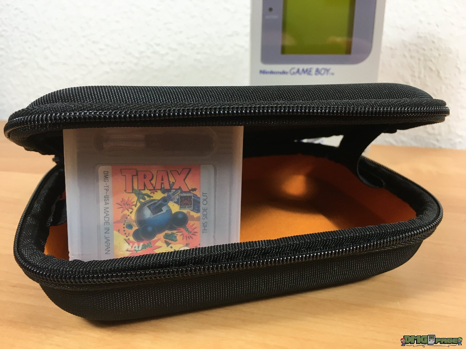 Das Etui ist sehr robust und kommt in der Farbkombination schwarz/orange. Im Inneren fügt sich der Game Boy reibungslos in die Schale und rutscht dank optimaler Abmessungen nicht hin und her. Ebenfalls bietet das Etui Platz für mindestens zwei Spiele oder eben Zubehör wie das Dialogkabel und Kopfhörer.