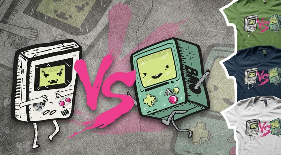 (pwc) Darauf habe ich ja nur gewartet. Endlich. Die epische Gegenüberstellung zwischen dem klassischen Game Boy und BMO aus Adventure Time. Wer wird gewinnen? Parallel schickt qwertee.com auch noch ein weiteres Game Boy Shirt ins Rennen: der Game-BMO hat ein NES-Gamepad an seiner Linkbuchse angeschlossen. Na ob das gut geht?