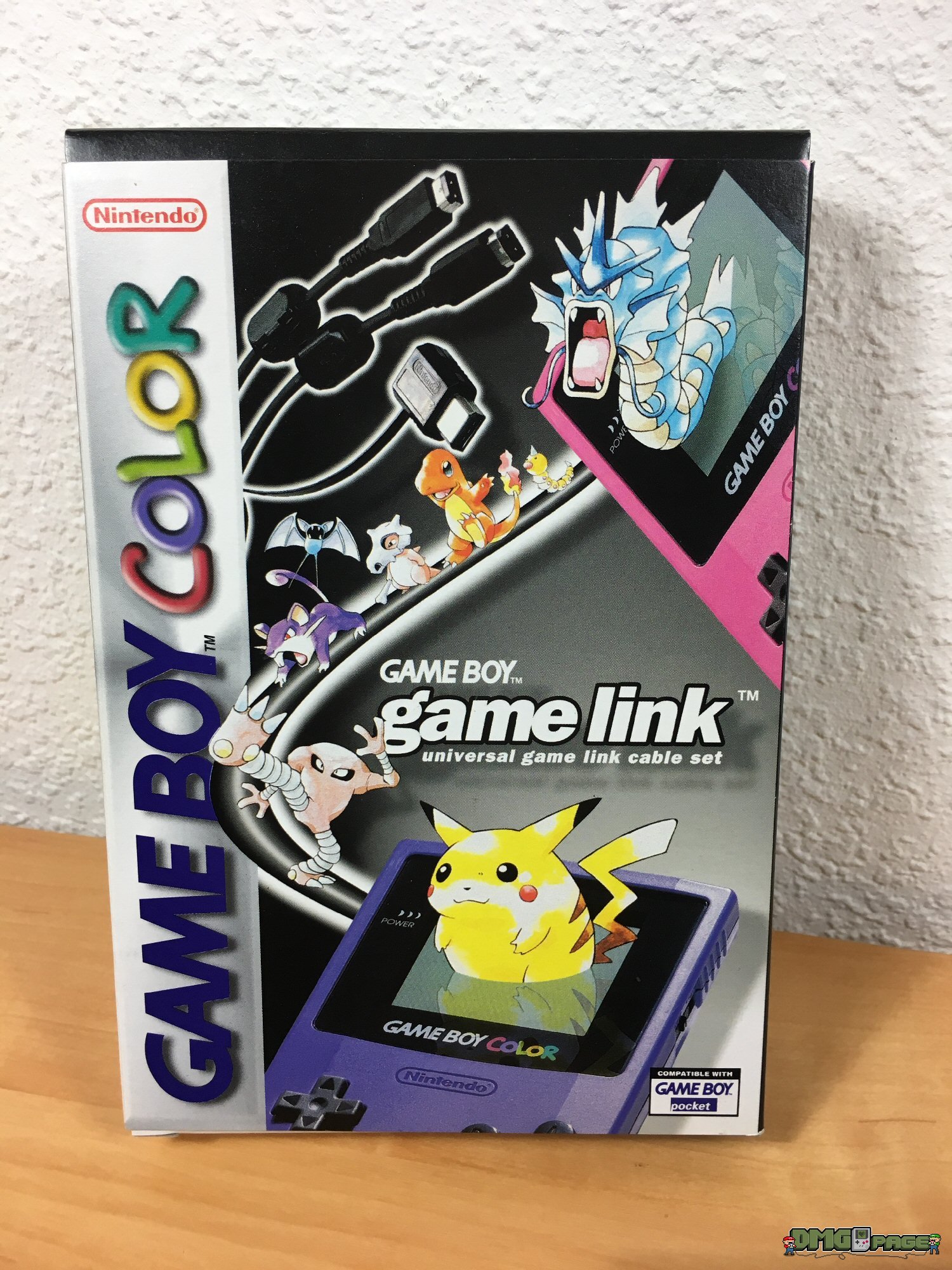 Um verschiedene Pokémon aus den Editionen miteinander zu tauschen, benötigt man für seinen Game Boy Color natürlich standesgemäß ein Kabel mit solch einer hübsch bedruckten OVP. Sammler schlagen zu – alle anderen können auch auf das MGB-010 zugreifen. Besonders macht das Kabel allerdings der beigefügte Adapter DMG-14 der es dem Game Boy Classic erlaubt an der wilden Tauscherei (oder halt einfach nur am Zocken) teilzuhaben.