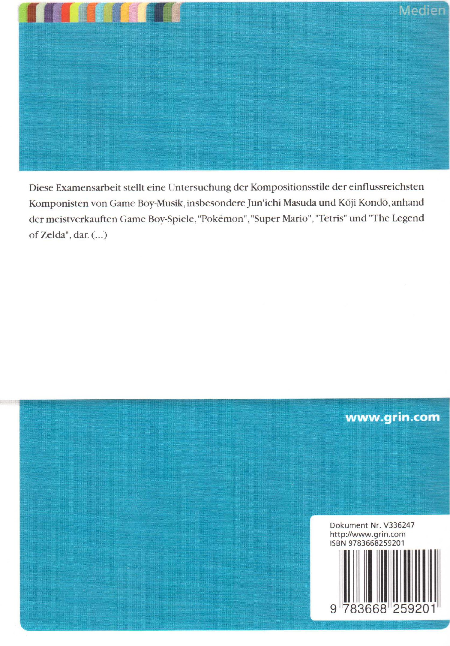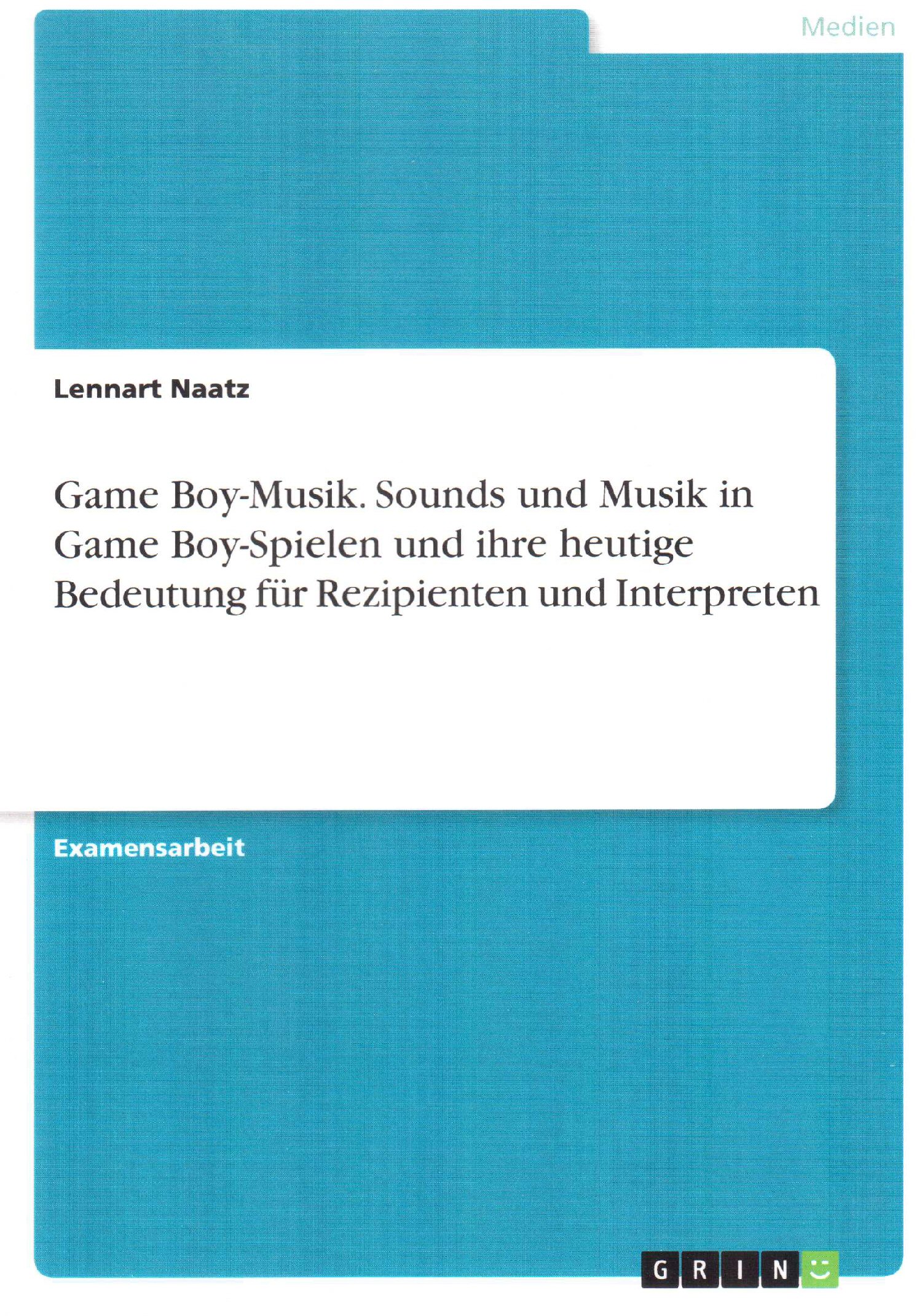 Die Hausarbeit liegt mir vor und ich habe sie mit Interesse gelesen. Lennart Naatz legt hier eine Arbeit vor, die die in Game Boy-Spielen verwendeten Sounds und Musik sowie deren heutige Bedeutung für Rezipienten einerseits und für Interpreten andererseits untersucht.