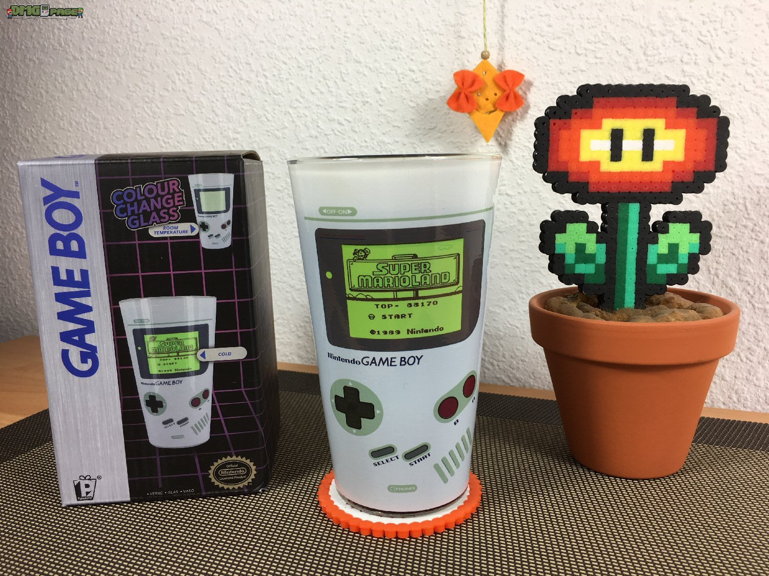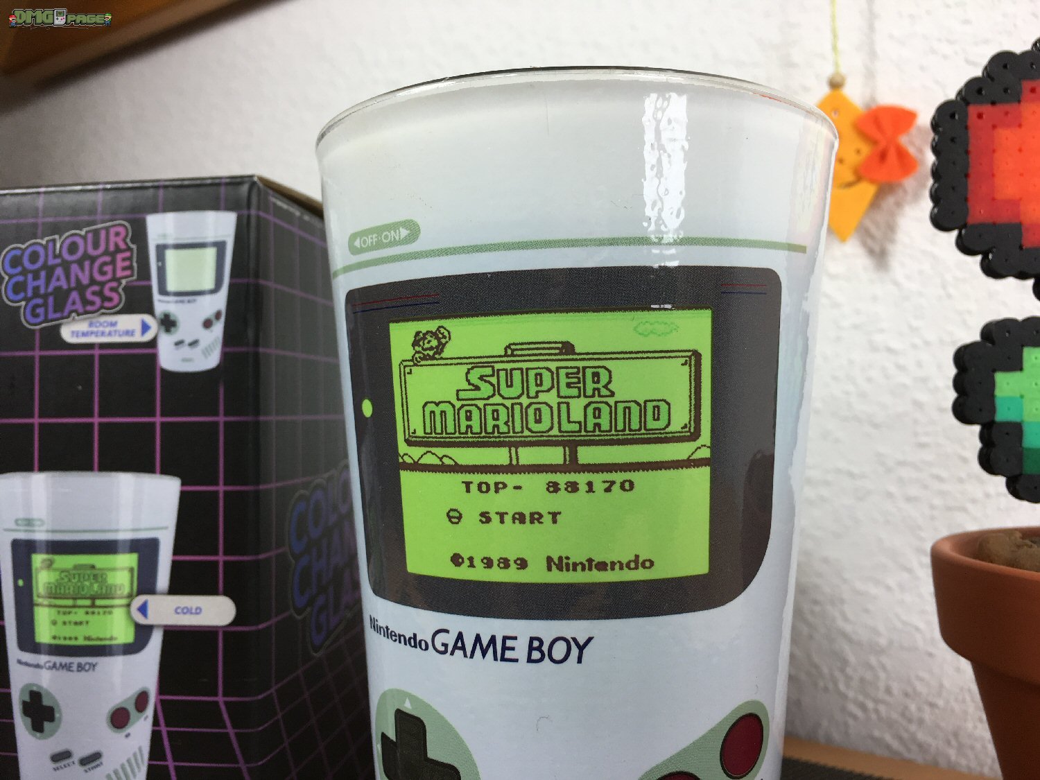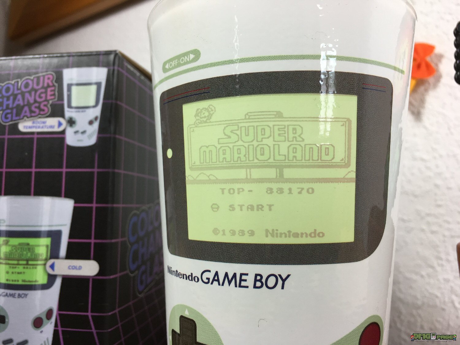(pwc) Wie cool ist das denn? Dieses lizenzierte Game Boy Farbwechselglas hat es in sich: unbefüllt sieht man im Display des aufgedruckten Game Boy schemenhaft den Startbildschirm aus Super Mario Land. Befüllt ihr das Glas allerdings mit einer kalten Flüssigkeit, fängt das Display an zu leuchten. Ganz ähnlich eines verbauten Backlight. Die Glasstärke ist recht dick und macht das Glas ungewohnt schwer. Die Verarbeitung ist meines Erachtens sehr gut – die Qualität überragend. Prima für die eigene Sammlung oder als nettes Geschenk für Freunde.