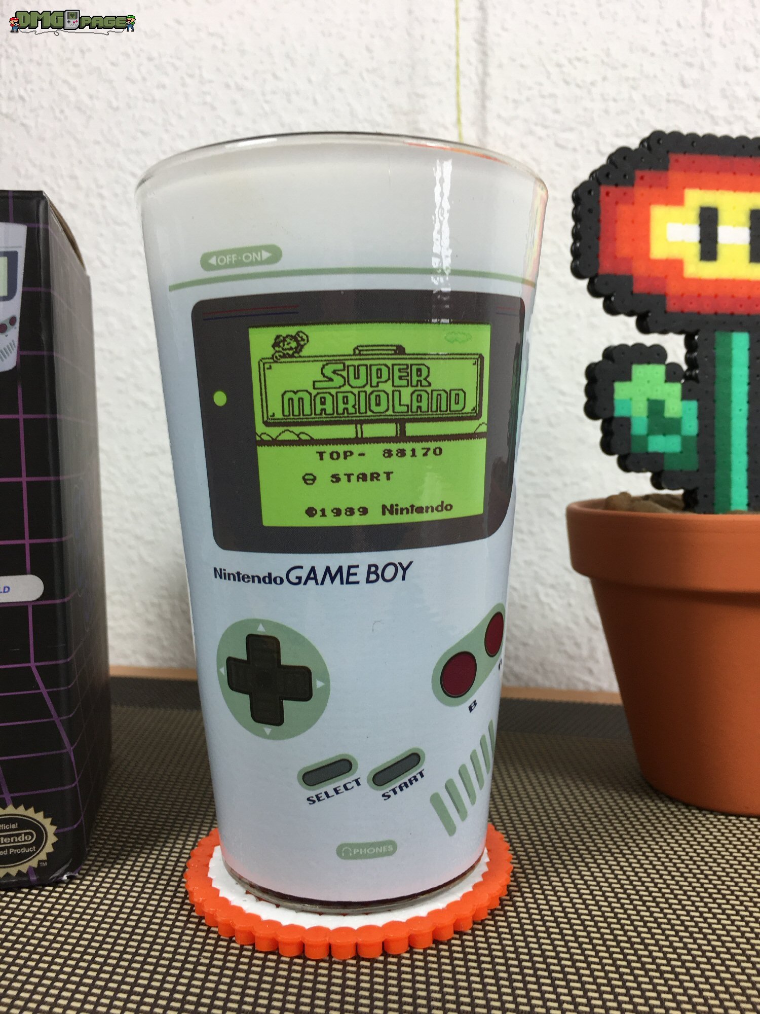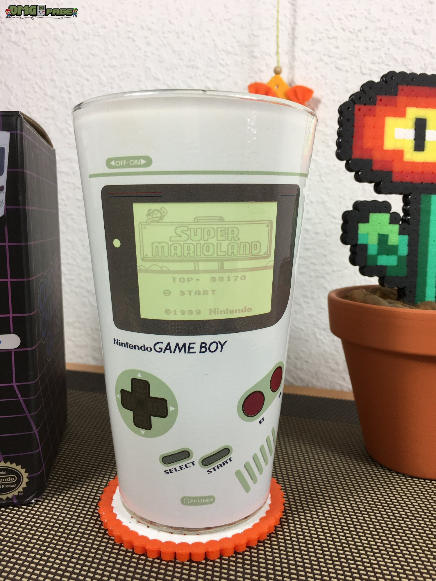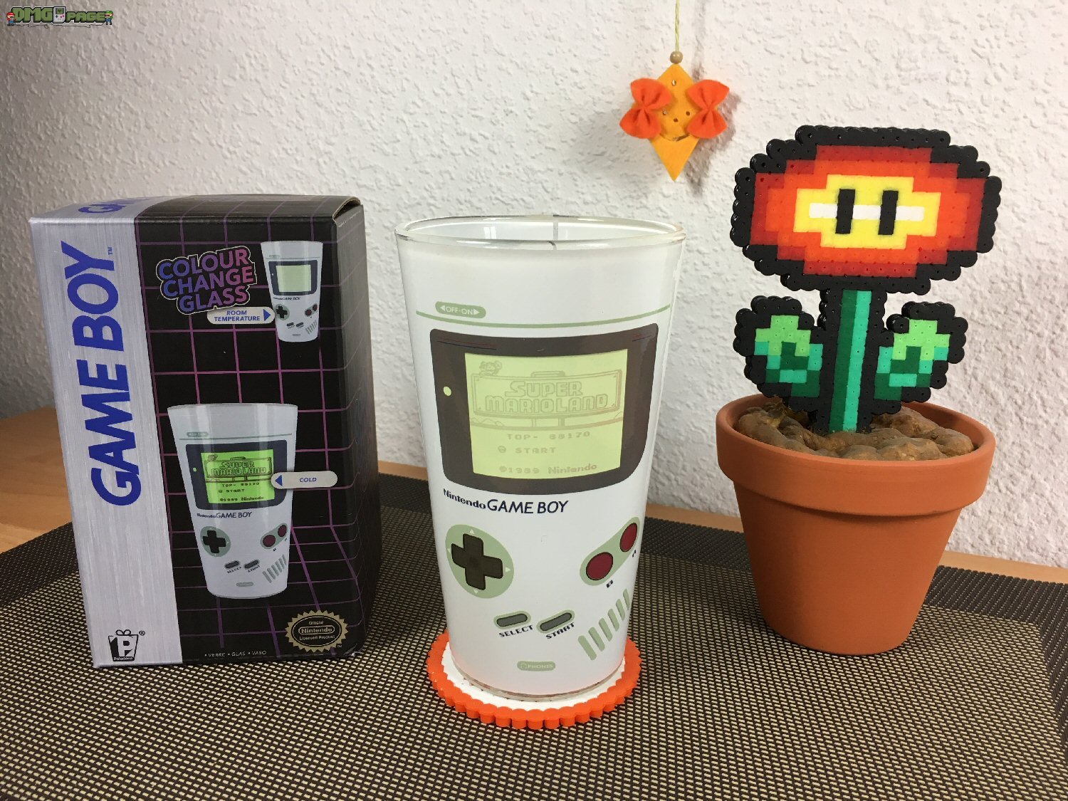 (pwc) Wie cool ist das denn? Dieses lizenzierte Game Boy Farbwechselglas hat es in sich: unbefüllt sieht man im Display des aufgedruckten Game Boy schemenhaft den Startbildschirm aus Super Mario Land. Befüllt ihr das Glas allerdings mit einer kalten Flüssigkeit, fängt das Display an zu leuchten. Ganz ähnlich eines verbauten Backlight. Die Glasstärke ist recht dick und macht das Glas ungewohnt schwer. Die Verarbeitung ist meines Erachtens sehr gut – die Qualität überragend. Prima für die eigene Sammlung oder als nettes Geschenk für Freunde.