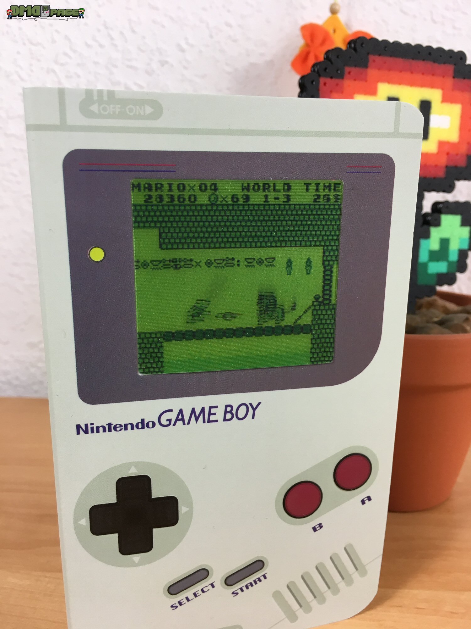 Auch ganz neu: das lizenzierte Game Boy Super Mario Land Notizbuch. 100 linierte Seiten stehen euch zur Verfügung. Das Besondere: die Vorderseite des Notizbuchs beinhaltet die erste Endboss-Szene aus Super Mario Land als Wackelbild. Wird Mario König Totomesu besiegen können?