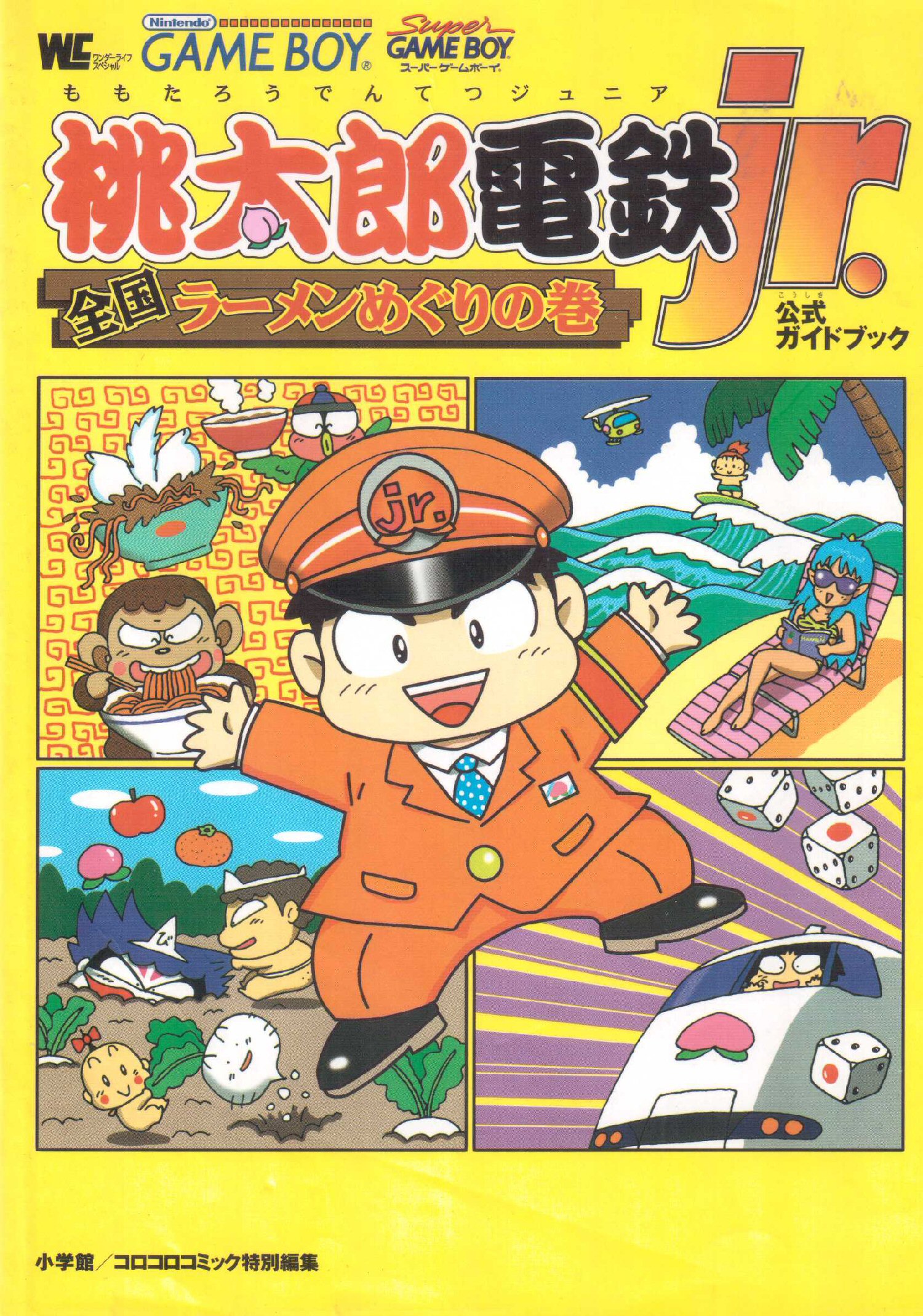 (pwc) Ich mache es kurz: Momotaro Dentetsu Jr. Zenkoku Ramen Meguri no Maki (桃太郎電鉄jr. 〜全国ラーメンめぐりの巻〜) ist ohne Japanischkenntnisse nicht zu spielen – und das Guide Book nicht zu lesen. Sehr schade – so handelt es sich bei Momotaro Dentetsu (nicht zu verwechseln mit Momotaro Densetsu) um eine spaßige (Brettspiel-) Serie in der ihr Japan per Bahn, Schiff oder auch Flugzeug bereist. Wie ihr anhand des Bildmaterials erkennt, kann es auf eurer Tour auch schonmal grob zugehen: Monster versperren ab und an die Zugstrecke! Grundsätzlich bin ich immer an Brettspielumsetzungen auf dem Game Boy interessiert – wenn da bloß nicht die unüberwindbare Sprachbarriere wäre.