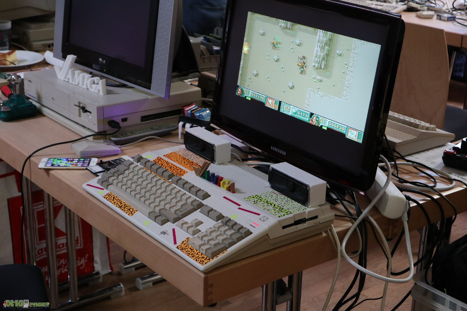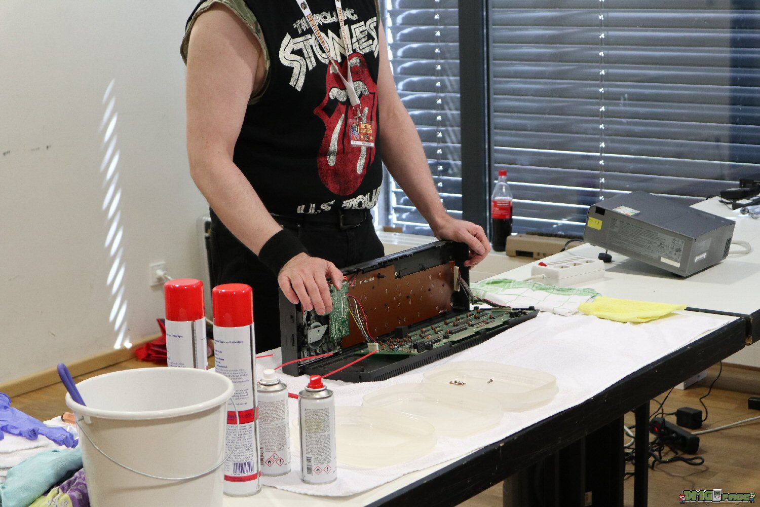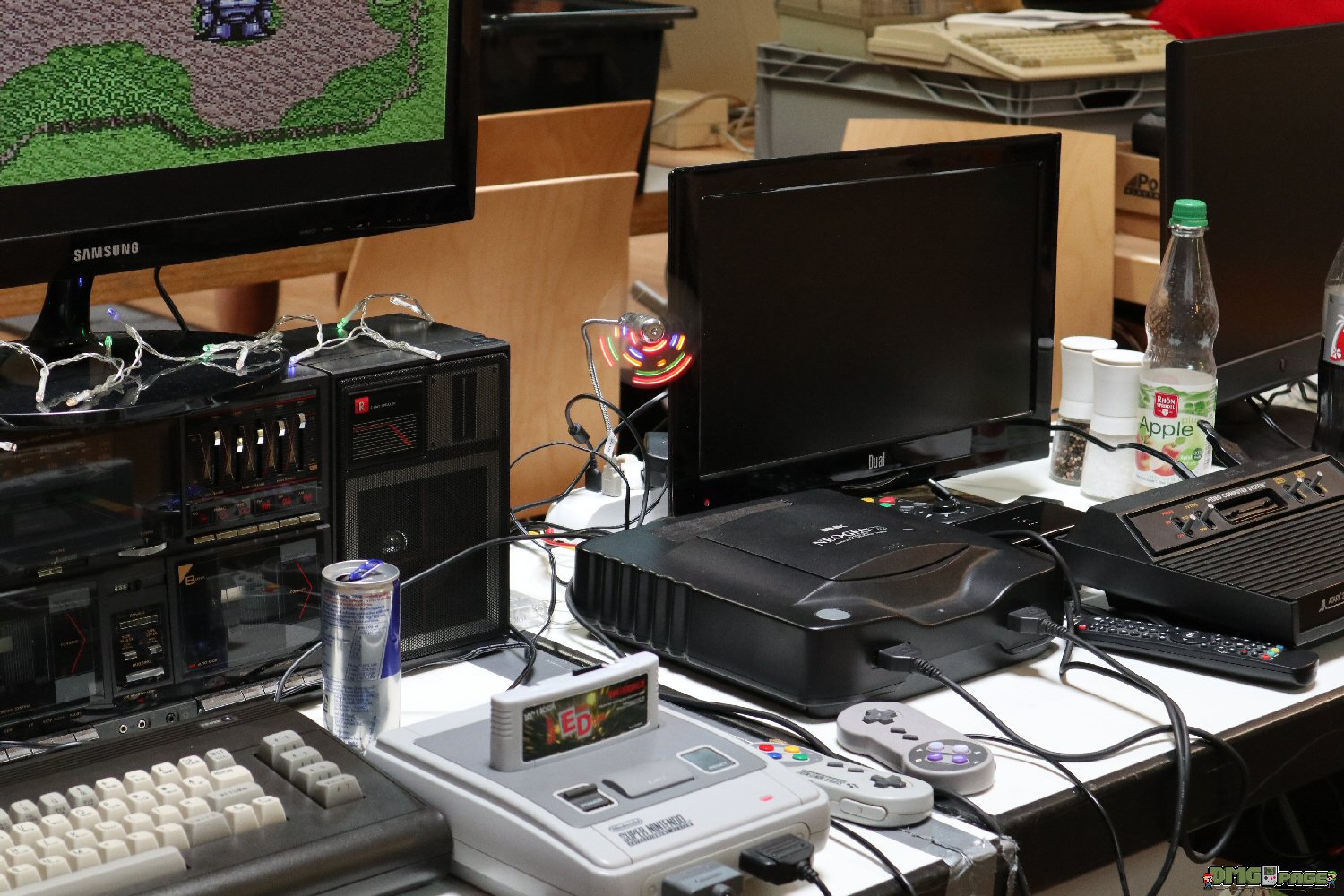 Als ich um kurz nach 12 Uhr die Kulturhalle in Steinheim betrat, hat die Retrolution eigentlich schon volle Fahrt aufgenommen. Während vor der Halle bei bestem Wetter fleißig gegrillt wurde, ist man in der Halle gefühlte 30 bis 40 Jahre zurück in die Zeit gereist. Wie auf einer typischen 90er Netzwerk-Party üblich, standen hier Tisch an Tisch und Rechner an Rechner. Wer auf der Retrolution allerdings nach aktueller Hardware sucht, ist lange unterwegs. Die meisten Aufbauten stammen aus der Homecomputer-Ära und damit einer für die meisten Teilnehmer prägenden Zeit.