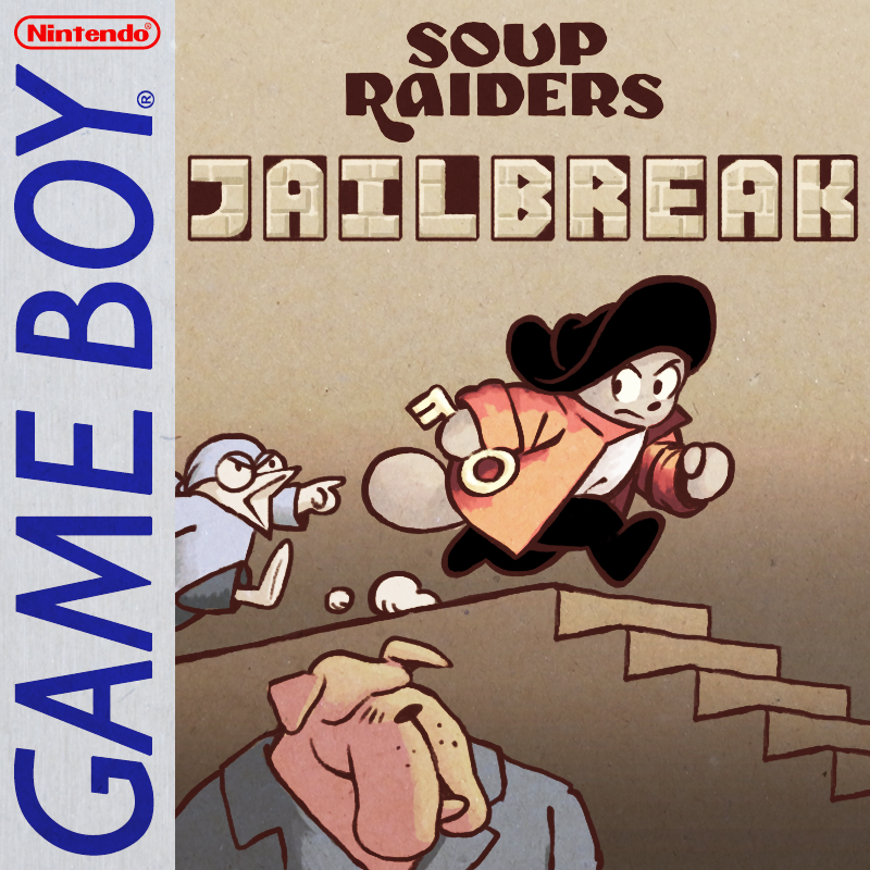 (pwc) Klein aber fein: Soup Raiders Jailbreak entstand im Rahmen des GBJam 5. Die Story ist recht oberflächlich – Black Whiskers und White Fur sind die Soup Raiders. Welches Ziel die beiden verfolgen bleibt leider unklar. Klar ist allerdings, dass White Fur tief im Keller von Bösewicht Mr. Whale in einer Zelle eingesperrt ist. Black Whiskers Aufgabe ist nun, seinen Kumpanen zu retten. Die Steuerung ist recht simpel: A springen, B ducken. Um an den Wänden entlangzulaufen springt man erst und drückt dann B. Das war’s auch schon. Soup Raiders Jailbreak besteht aus einem Level das ziemlich schnell durchgespielt ist.