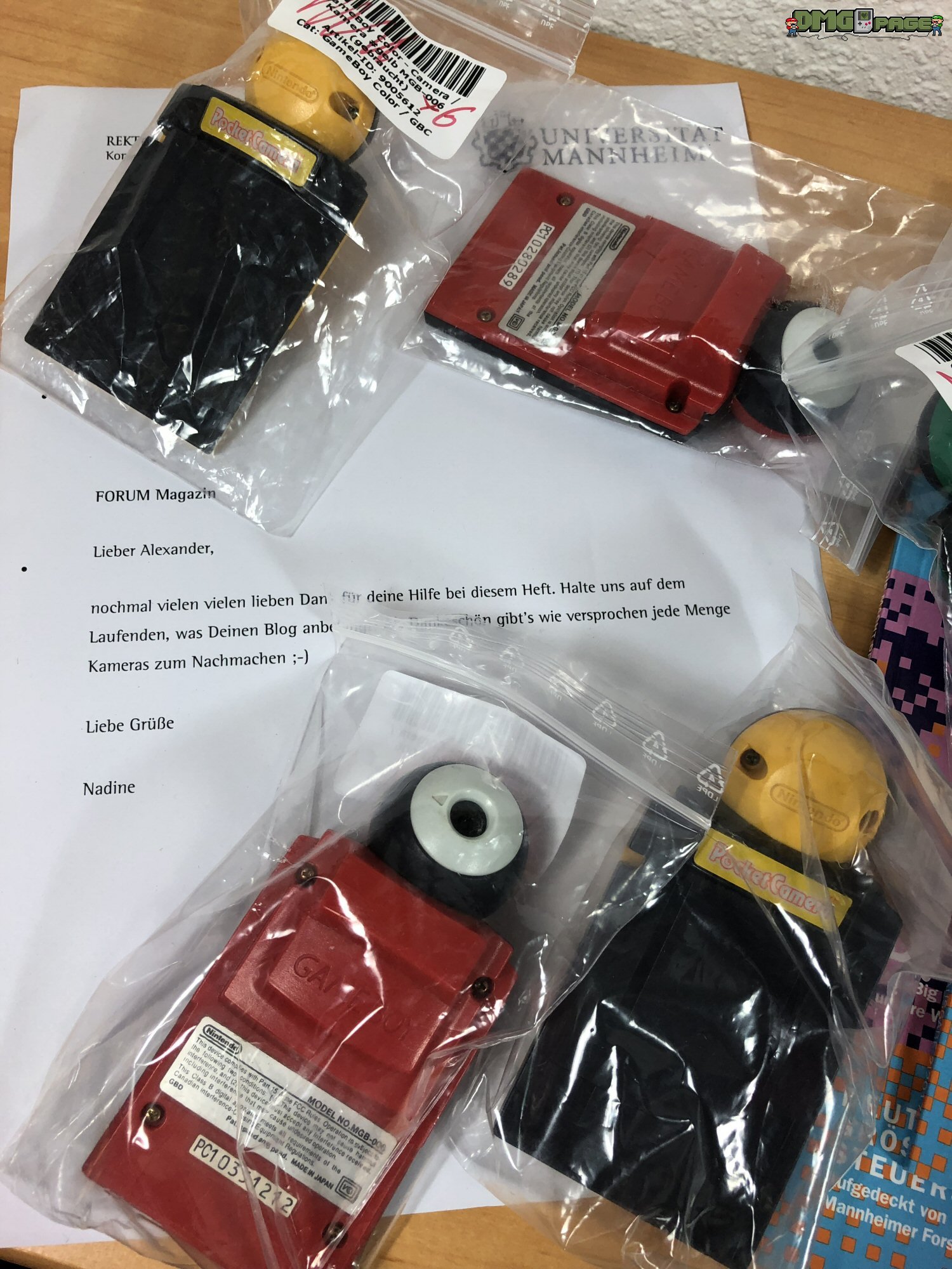 Knapp zwei Monate musste ich mich noch gedulden und dann war das Magazin verfügbar. Schaut es euch ruhig mal an. Die Bilder sind wirklich klasse! Und jetzt die nächste Überraschung: als der Postbote heute geklingelt hat, habe ich ganz und gar nicht damit gerechnet ein Päckchen der Uni zu erhalten. Innen liegend: einige Exemplare des FORUM-Magazins und ganze sechs Game Boy Cameras. Na wenn das nicht cool ist :-)