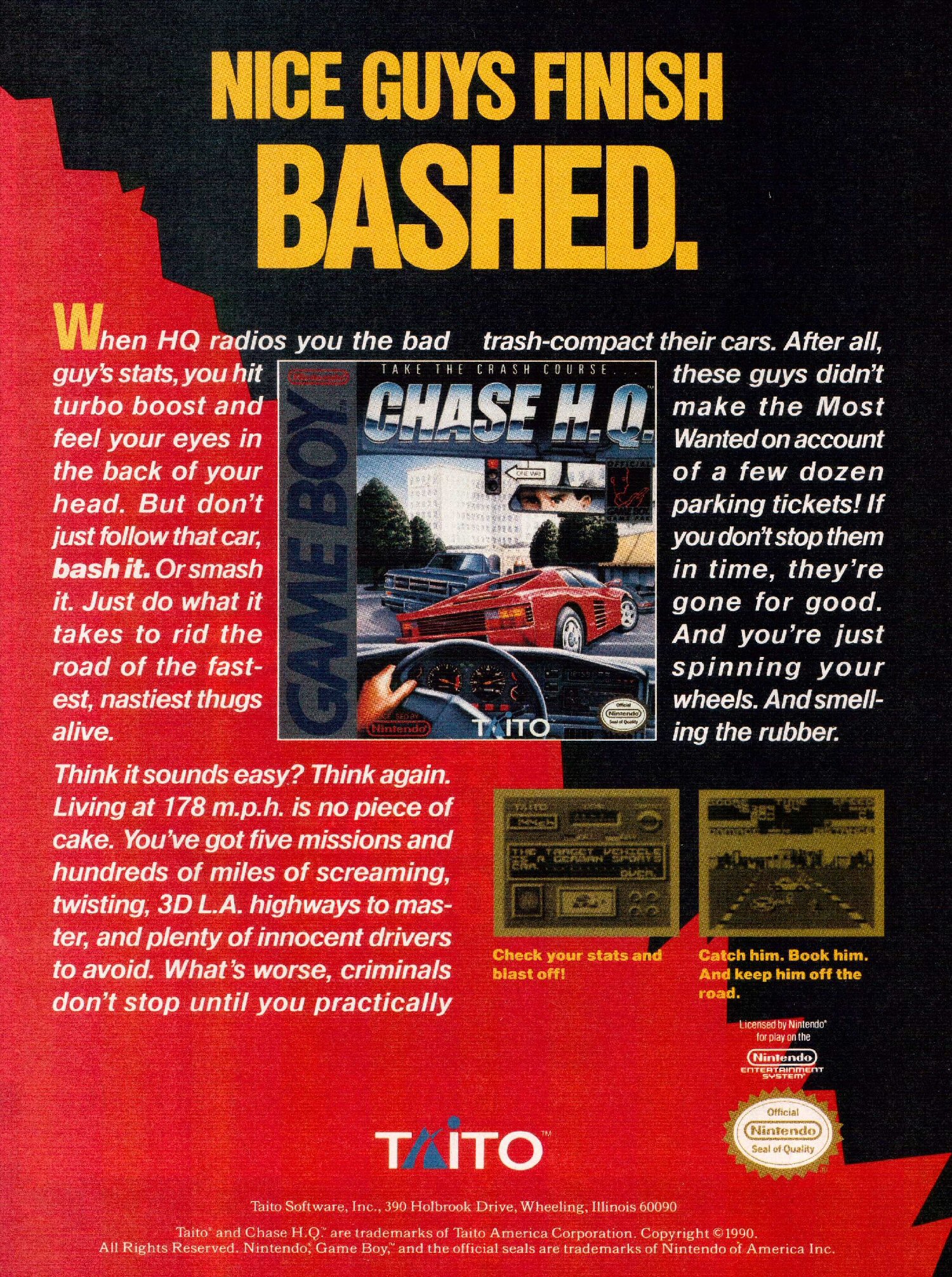 (pwc) Chase H.Q. ist das etwas andere Rennspiel. Auf dem Highway jagen wir Schwerverbrecher. Über den Funk im Auto erhalten wir präzise Angaben zum Fluchtwagen. Schaffen wir es in seine Reichweite zu gelangen, heißt es eine Nummer rabiater zu werden: mit Rammattacken versuchen wir den Gegner an seiner Flucht zu hindern. Gelingt uns dies, steht der Verhaftung nichts mehr im Wege.