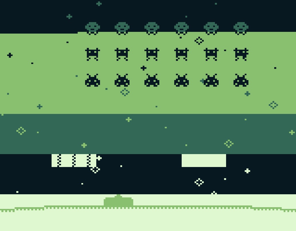 Die Gefahr aus dem All kommt unentwegt näher. Euer Panzer hält insgesamt vier Treffer aus und wird lediglich durch zwei Barrikaden geschützt. Diese sind den Schüssen der Invader aber auch euren Schüssen hilflos ausgeliefert und bröckeln dementsprechend ziemlich schnell auseinander.