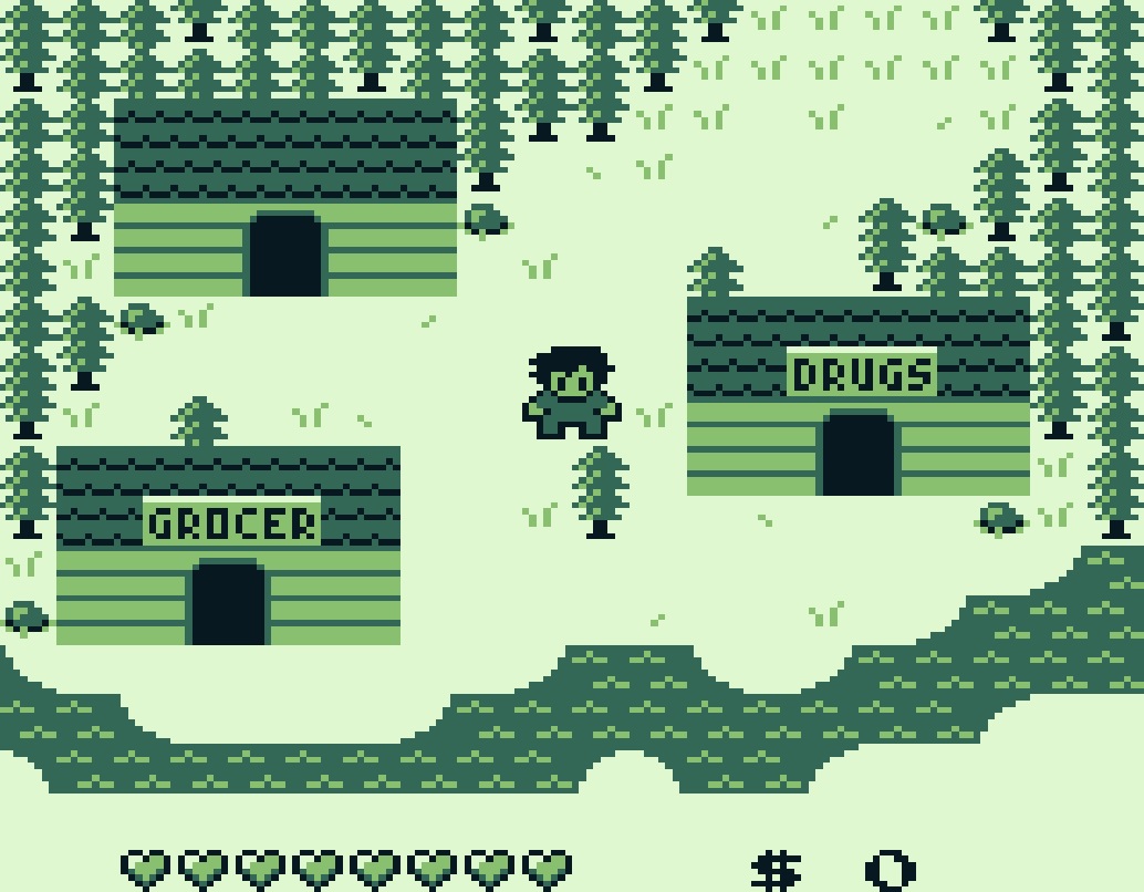 Unser Held beginnt sein Abenteuer in einem kleinen Dorf das aus drei Häusern besteht. Im unbeschrifteten Haus erfahren wir von der aktuellen Situation. Man bittet uns um Hilfe und bekommen dafür 500 $ mit denen wir uns ausrüsten können. In der Apotheke können wir ein Elixier erwerben das unsere Lebenspunkte wiederherstellt. Das Angebot des Händlers ist leider sehr beschränkt, da er durch die Schleimkreaturen nicht mehr beliefert wird. Bei ihm können wir lediglich Batterien kaufen – für 5.000 $.