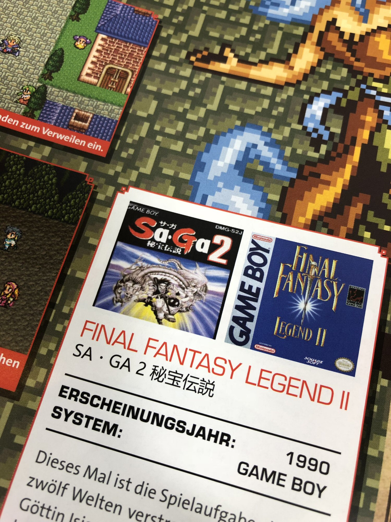 Schlussendlich begegnet uns der Game Boy im mehrseitigen Sa.Ga Beitrag in Form von Sa.Ga (The Final Fantasy Legend), Sa.Ga 2 (The Final Fantasy Legend II) und Sa.Ga 3 (The Final Fantasy Legend III). Achja, da kommt echte Nostalgie auf – vielleicht sollte ich mich zumindest dem zweiten Teil nochmal widmen – diesen fand ich seinerzeit den besten in der Serie. Ob die interne Speicherbatterie noch funktioniert?