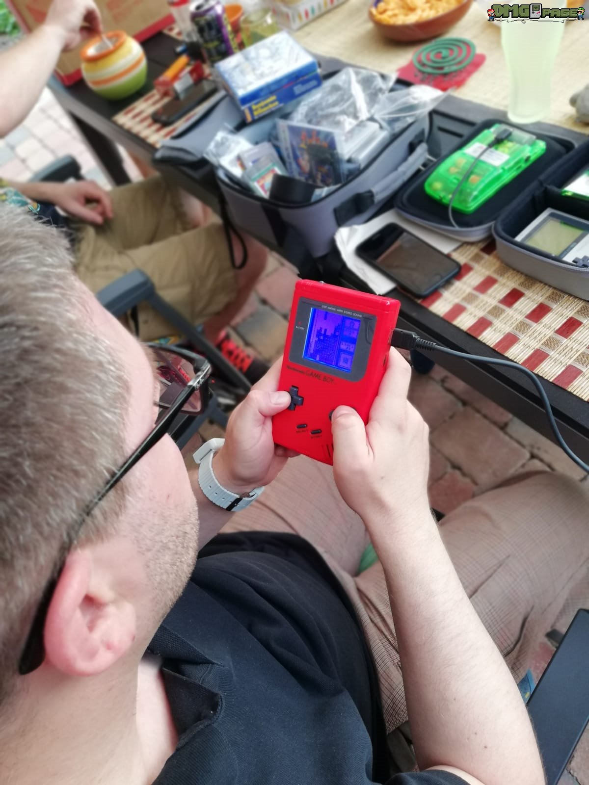 Wieder einmal wurden viele Klassiker gespielt: Top Ranking Tennis, Wave Race, Balloon Kid, Dr. Mario, Qix und Penguin Wars zum Beispiel. Auch Tetris und Quarth kamen zum Einsatz. Neben der Spielerei haben wir auch einige Experimente mit der Game Boy Camera gemacht. Durch austauschbare Linsen konnten bemerkenswerte Effekte erzielt werden. Besonders herausgestochen ist die Makrolinse, mit der wir selbst kleinste Schriften auf einem Game Boy Mudulaufkleber hervorheben konnten. Auch mit der 3er und der 6er Kaleidoskoplinse hatten wir viel Freude.