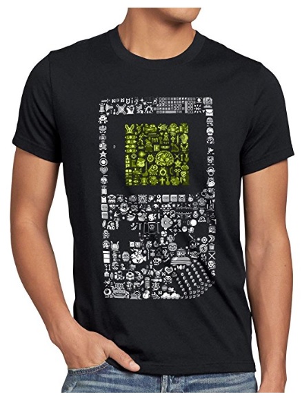 (pwc) Da bei Qwertee gerade gameboymäßige T-Shirt Flaute herrscht, gibt es heute mal einen Amazon-Tipp: das style3 8 Bit-Pixel Boy T-Shirt ist mir von Stammleser Steve Gruner empfohlen worden. Das Shirt besticht durch einen recht interessanten Aufdruck, denn der Game Boy ist hier aus etlichen kleinen Pixelbildchen und Sprites erstellt worden. Wenn ihr genau hinguckt, könnt ihr diese bestimmt auch dem ein oder anderen Spiel zuordnen. Tetris, Kirby’s Dream Land oder Super Mario Land 2 zum Beispiel. Wer entdeckt weitere Spiele?