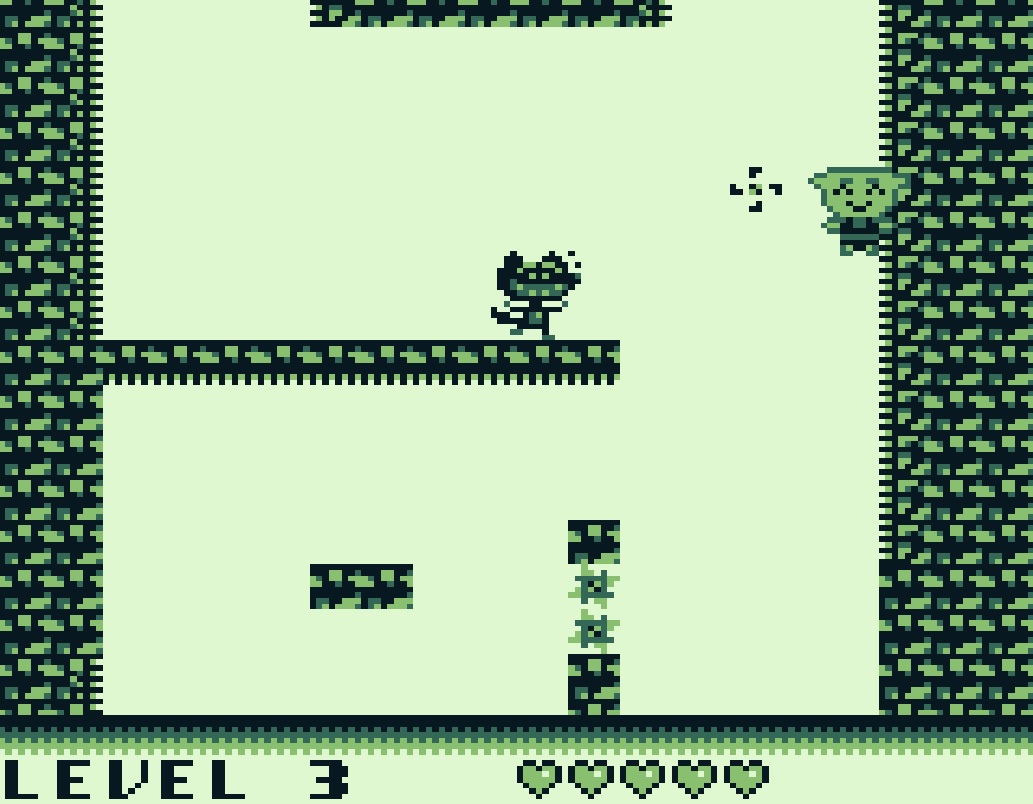 Polka Sheep bietet ein interessantes Spielprinzip. So bewegen wir das Schaf grundsätzlich durch Sprünge. Während permanent der Sprungrichtungscursor um das Schaf wandert, drücken wir einfach die A-Taste für den „Abschuss“. So können wir mühelos Abgründe oder höher gelegene Plattformen überwinden. Springt man gegen ein Klettband, bleiben wir dort erst einmal hängen. An glatten Wänden funktioniert das natürlich nicht.
