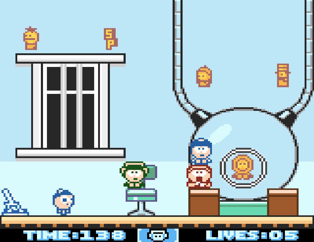 Apropos Items: in jedem Level sind welche einsammelbar. Das können Extraleben sein, als auch schwebende Minifiguren von Ike, Mr. Hat und Wendy. Ihr seid nicht gezwungen die Figuren einzusammeln um das Level zu beenden – drückt ihr allerdings Select, erhaltet ihr eine Levelübersicht inklusive Sammlung. Und wer möchte da schon Lücken haben?^^ Daneben bringen euch die Figuren einen weiteren Vorteil: habt ihr eure Sammlung komplett, winkt ein Bonuslevel. In diesem könnt ihr wertvolle Extraleben ergattern.