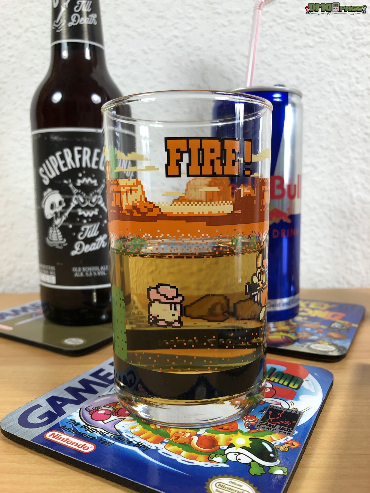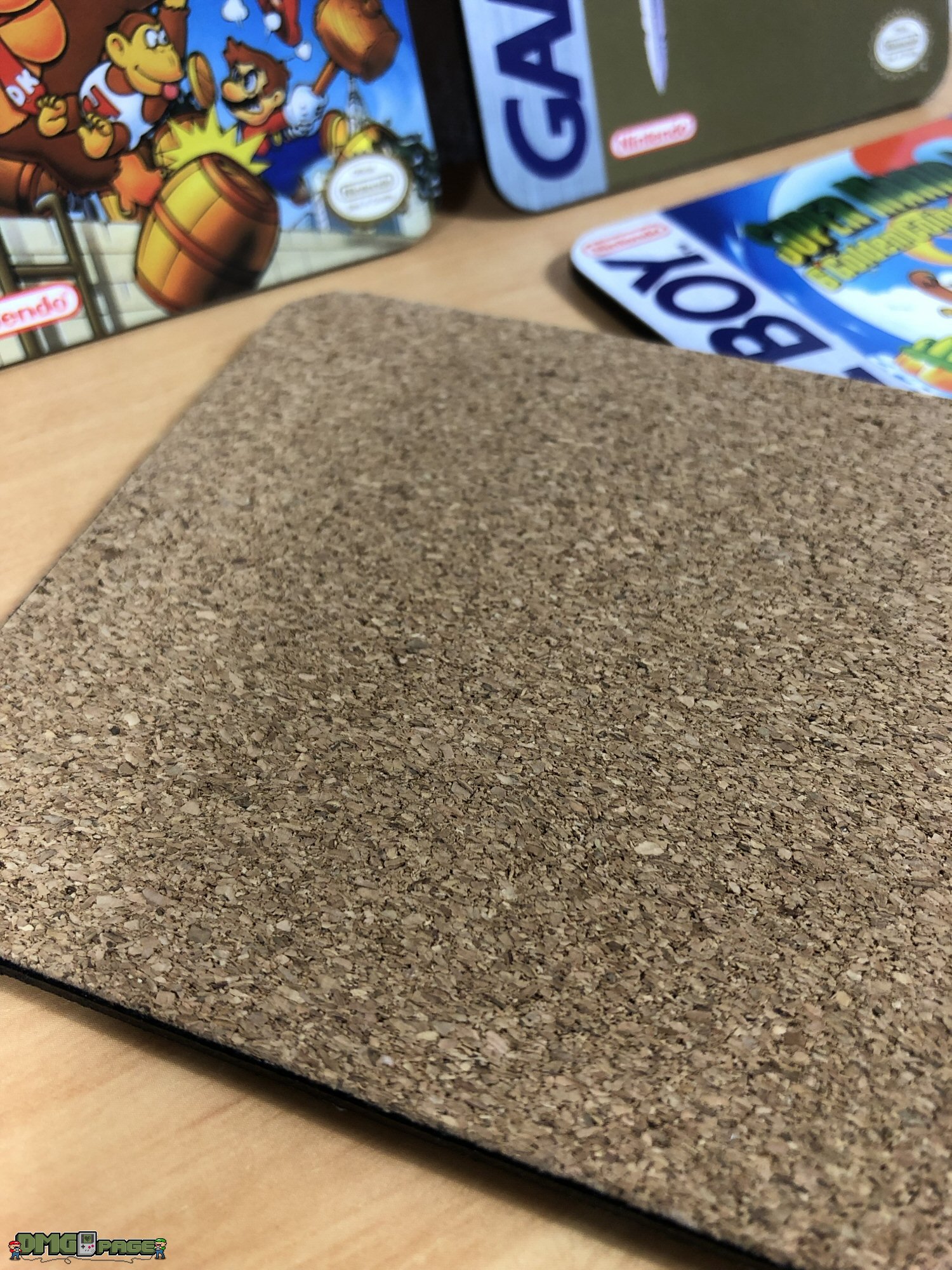 Die Oberseite ist mit Folie beklebt, die rutschhemmend wirkt. Die Unterseite aus Kork schützt euren Holz- oder Glastisch. Mit 10 x 10 cm sind die Untersetzer auch für breitere Flaschen oder ordentliche Biergläser geeignet. Qualitativ sind sie in Ordnung – beim Super Mario Land Untersetzer habe ich einen minimalen Druckversatz innerhalb des linken Game Boy Schriftzuges zu verzeichnen.