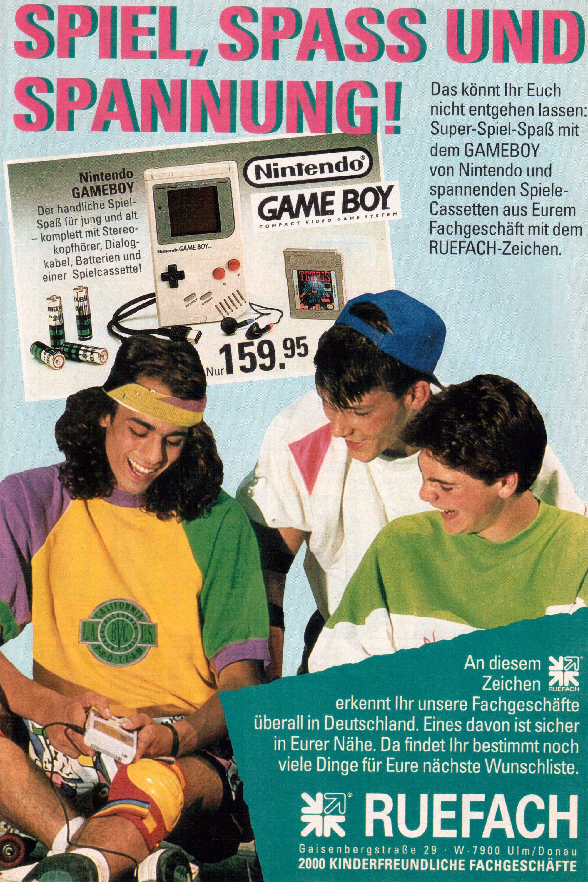 (pwc) Im Micky Maus Heft 17 aus dem Jahr 1991 wurde auch der Game Boy beworben: viel Spiel, Spaß und Spannung bietet euch das 159,95 DM teure Set inkl. der Spielcassette Tetris. Also Modul und Cartridge kenne ich als typische Begrifflichkeiten im Game Boy Bereich – aber Spielcassette war bisher neu :-) Die 90er Jahre Kids haben echt eine ganze Menge Fun beim Zocken.