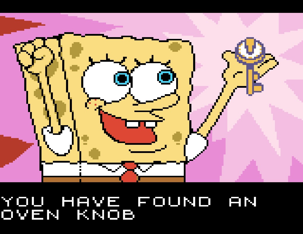 SpongeBob schaut sich die Statue genauer an: sie symbolisiert den Meisterkoch, wie er auf einem Backofen steht. Dem Backofen fehlen allerdings vier Knöpfe, mit denen er sich öffnen lässt, um den geheimen Eingang in die Unterwelt zu gestatten. Unsere Aufgabe als Spieler ist es nun, die vier Knöpfe in Bikini Bottom ausfindig zu machen.