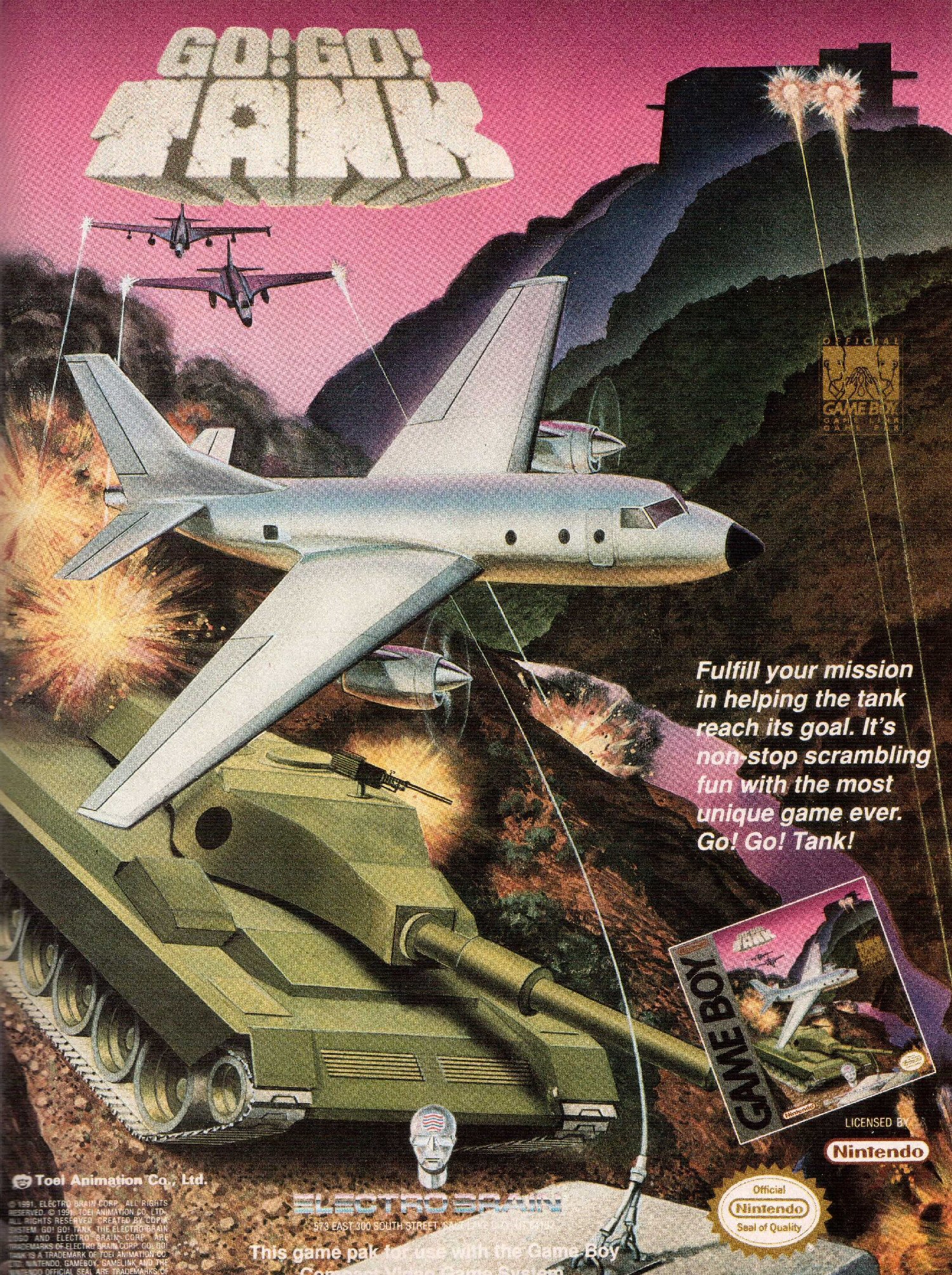 (pwc) Kampfflugzeuge, Panzer, Bunkerstellungen – in Go!Go! Tank geht ganz schön die Post ab. Um sein Ziel zu erreichen, müsst ihr in eurem Flugzeug Hindernisse aus dem Weg schaffen bzw. so anordnen, dass der Panzer selbst in der Lage ist, Hindernisse zu überwinden. Flugzeug und Panzer bilden also ein Team und in typisch japanischer Manier ist die Kriegsmaschinerie natürlich verniedlicht. So ernst wie diese Werbeanzeige ist das Spiel allemal nicht.