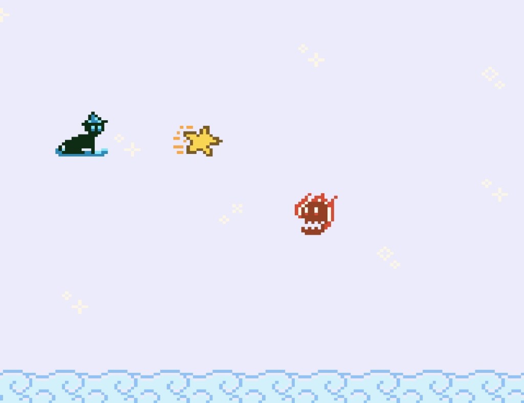Ist das nicht süß? Ist steuert Mona durch vier ganz wunderbare Level. Mit A wird gesprungen und mit B verschießt sie Zaubersterne. Da auch Monas Bett zum Leben erwacht, fliegt sie auf diesem durch die Nacht.