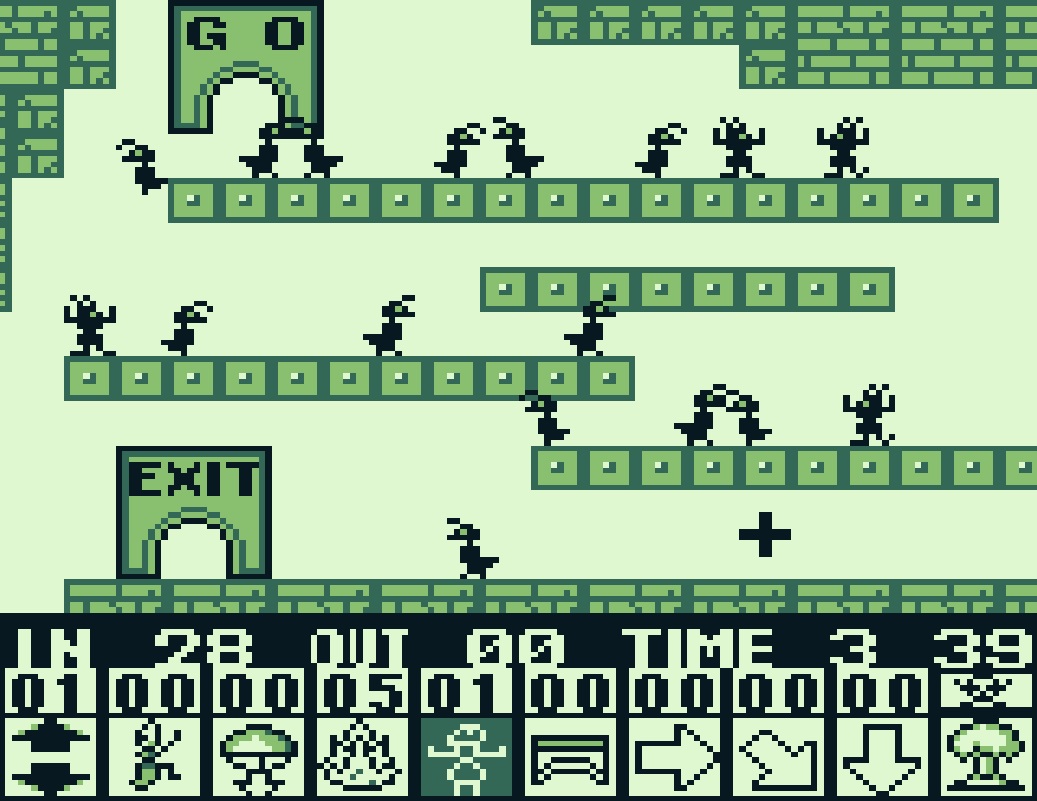 Ant Soldiers ist vergleichbar mit Lemmings oder Krusty’s Fun House. Eure Aufgabe ist es eine bestimmte Anzahl Ameisen zum Levelausgang zu begleiten. Hierbei bewegen sich die Ameisen von alleine, stoßen aber mitunter auf Hindernisse oder fallen Abgründe hinab. Damit der Ausflug erfolgreich bleibt und die geforderte Anzahl an Ameisen überlebt, steht uns eine Aktionsleiste zur Verfügung. Über diese können wir jeder Ameise individuelle Befehle erteilen. Zum Beispiel, dass sich die Ameise durch den Boden graben soll, als Stopper dient oder eine Wand hochkrabbelt.