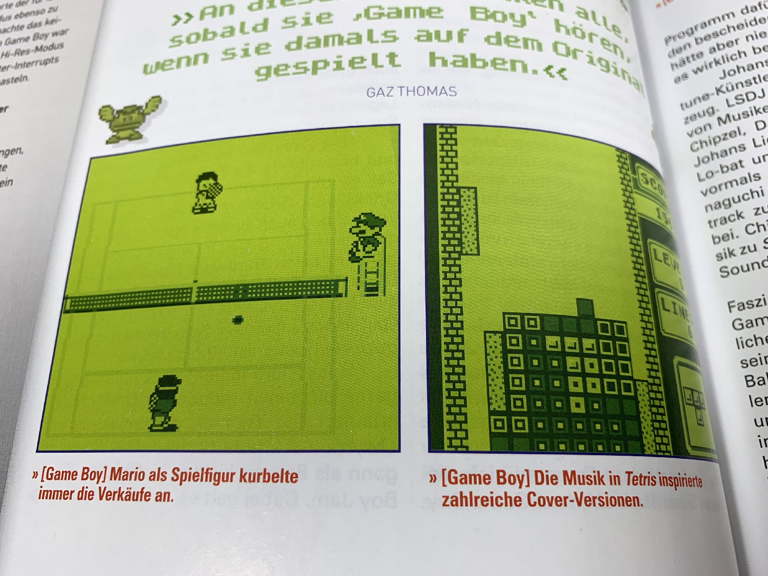 Aufgebaut ist das Special wie viele andere Berichte auch. Zu Beginn erfolgt ein Vergleich zu anderen, leistungsstärkeren Handhelds der Zeit und die Erkenntnis, dass diese trotz technischer Überlegenheit, schlussendlich keine Chance gegen den Game Boy hatten. Auch der Hinweis auf die beiden absoluten Killerapps Tetris (1989) und Pokémon Rot/Blau (1998) gehört einfach dazu. Während die Special Edition (oder auch Play it Loud) und die allermeisten Hardware-Erweiterungen (Camera, Printer etc.) keine Erwähnung finden, kommen aber andere, spannende Themen zum Zug. So kommt Johan Kotlinksi, der Entwickler von Little Sound DJ (LSDJ) zu Wort oder auch Jeremy Parish, der Autor der Game Boy World Bücher.