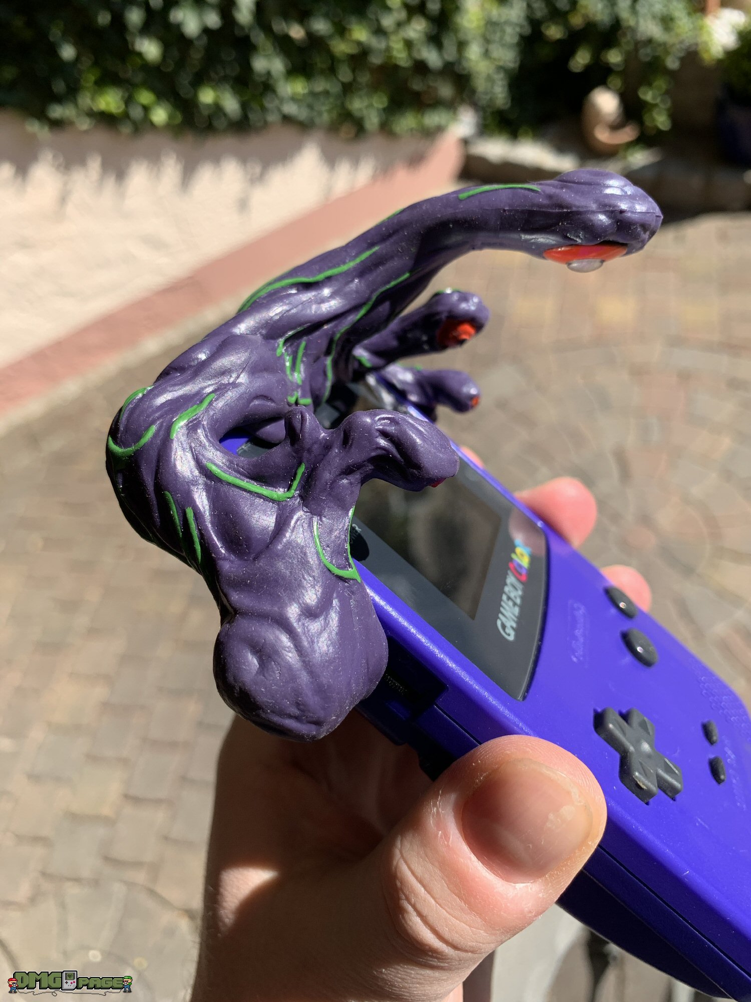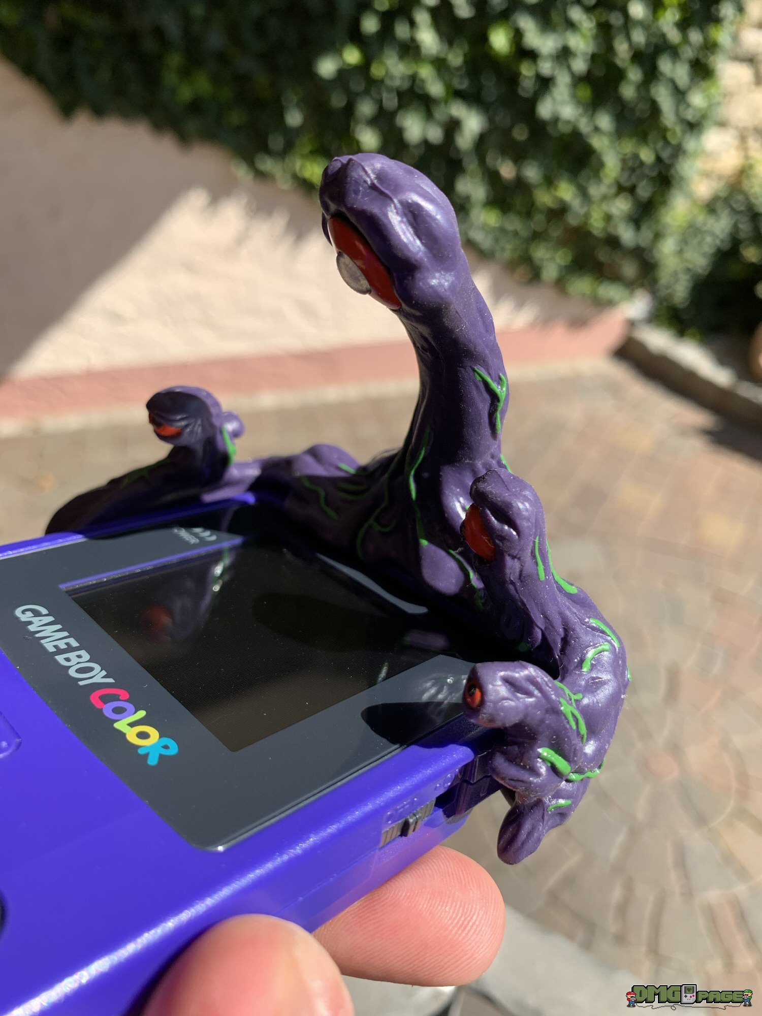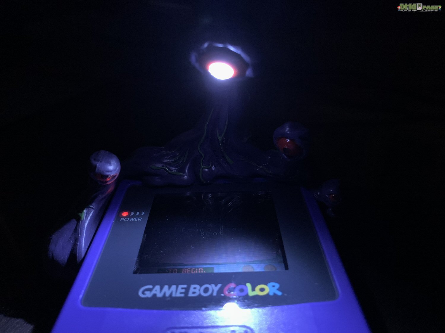 Der Blob ist eine mit Adern durchzogene Masse mit vier Auswüchsen. Am Ende dieser Auswüchse sitzt jeweils ein Auge. Der Clou: im mittleren Auge ist eine Lampe verbaut, die das Game Boy Display von oben beleuchtet. So cool das Blob Light auch sein mag, so unbrauchbar ist die Umsetzung, denn die Lichtquelle spiegelt sich natürlich im Display und sorgt so für einen äußerst störenden Effekt.