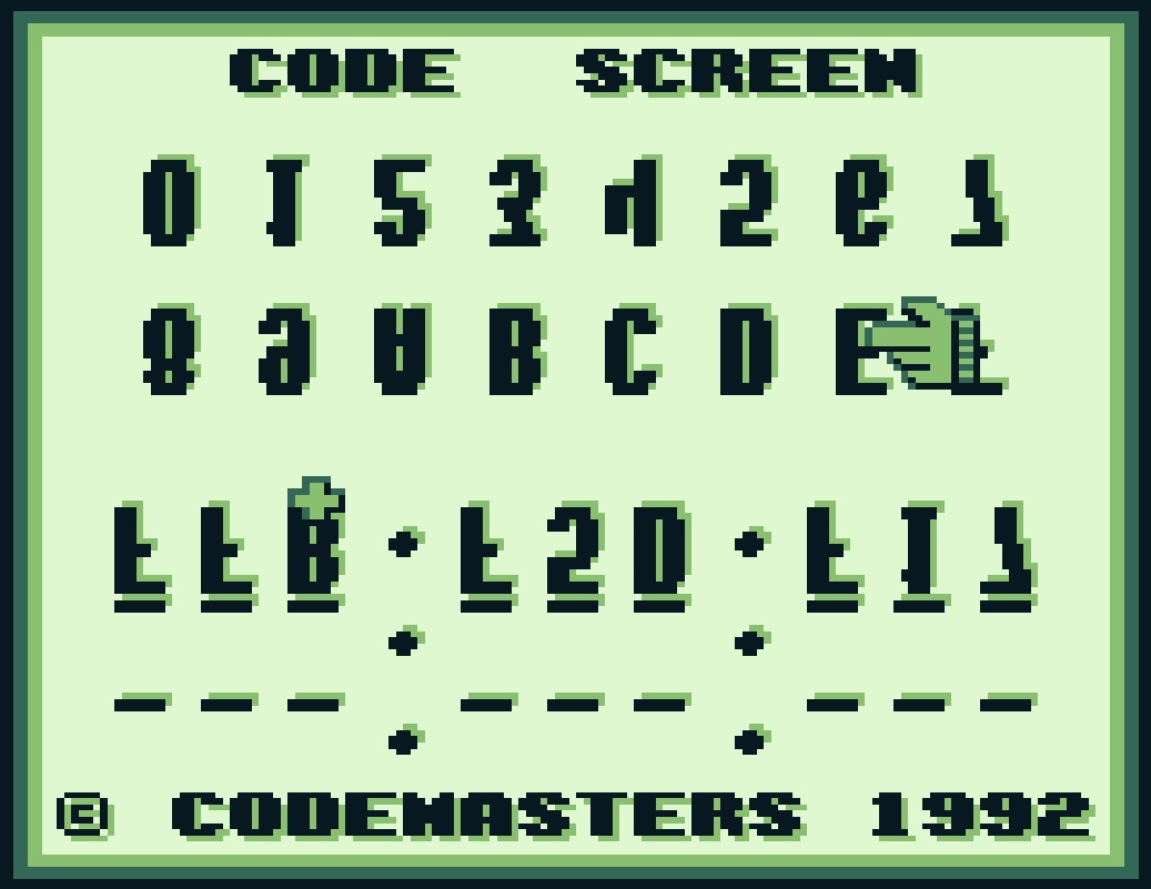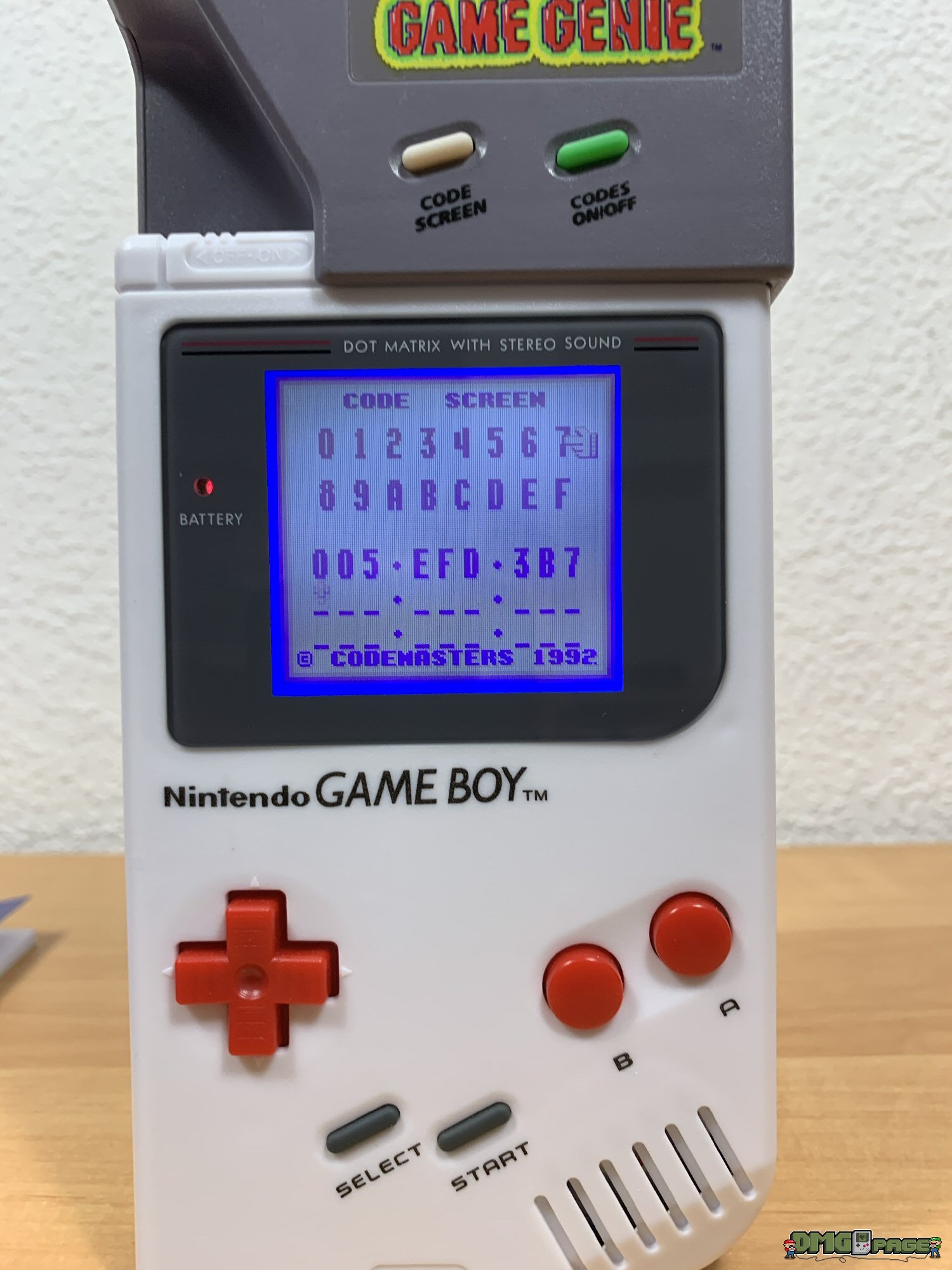 Wenn ihr nun den Game Boy anschaltet, begrüßt euch der Game Genie Screen und ihr landet schlussendlich bei der Codeeingabe. Sobald ihr den Wunschcode eingegeben habt, einfach mit Start bestätigen. Wenn alles reibungslos funktioniert hat, startet unmittelbar das Spiel mit aktiviertem Cheat. Wenn die Codeeingabe nicht erfolgreich war, erhaltet ihr einen entsprechenden Hinweis.