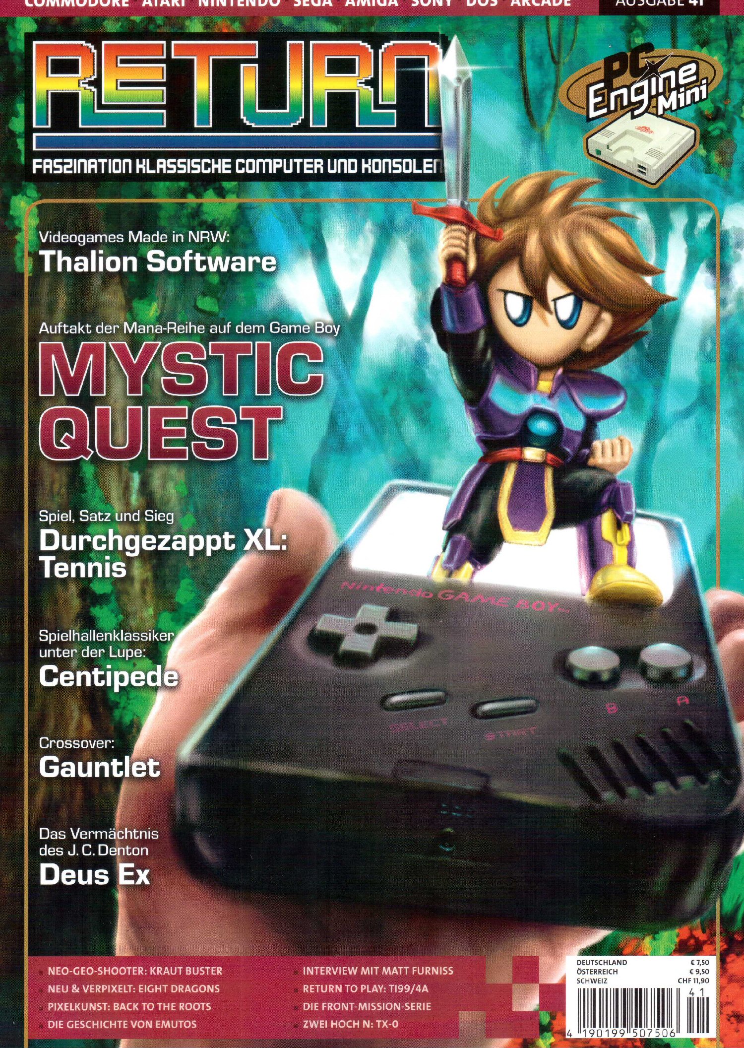 Auf ganzen 5 Seiten widmet sich Autor Christian Serra Mystic Quest, das Dank der Collection of Mana für die Switch nun auch auf einem modernen System spielbar ist. Obwohl das Spiel unter’m Strich gut bewertet wird, listet er auch einige Punkte auf, die er heute als nervig empfindet (die Ausrüstung muss zu oft gewechselt werden, Einwohner sagen ihren Text bei bloßer Berührung auf, das Problem mit den Schatztruhen und einem randvollen Inventar etc.).