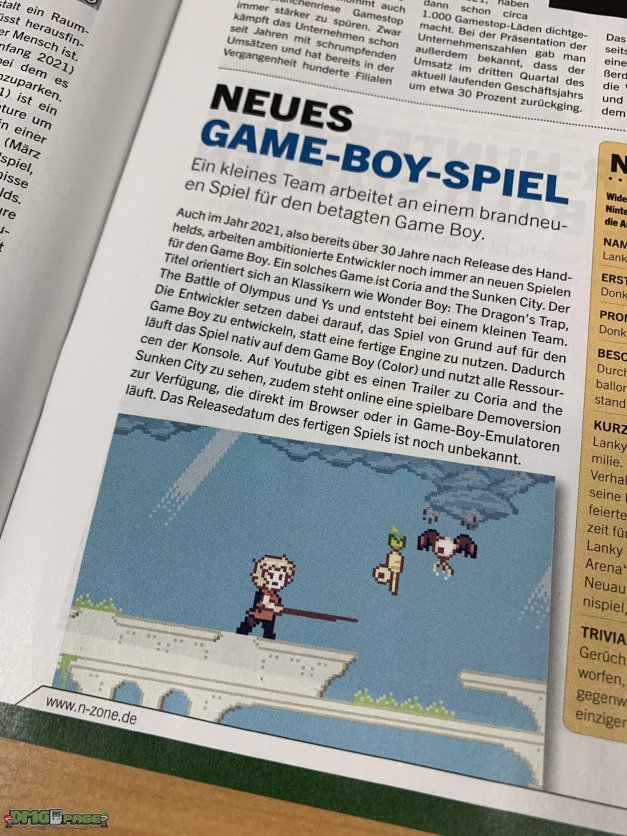 (pwc) In der aktuellen N-Zone gibt es für Game Boy Fans wieder einiges zu entdecken. Zum Beispiel ein kleiner Hinweis auf den kommenden Homebrew-Titel Coria and the Sunken City. Auf das Spiel freue ich mich auch schon sehr. Wem Coria bisher verborgen geblieben ist, schaut doch einfach mal ►hier vorbei.