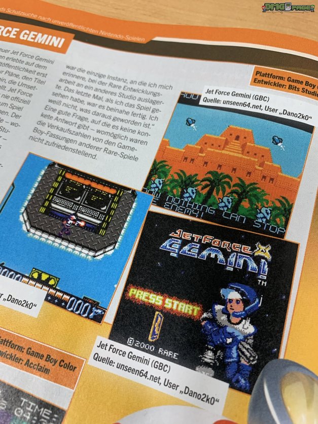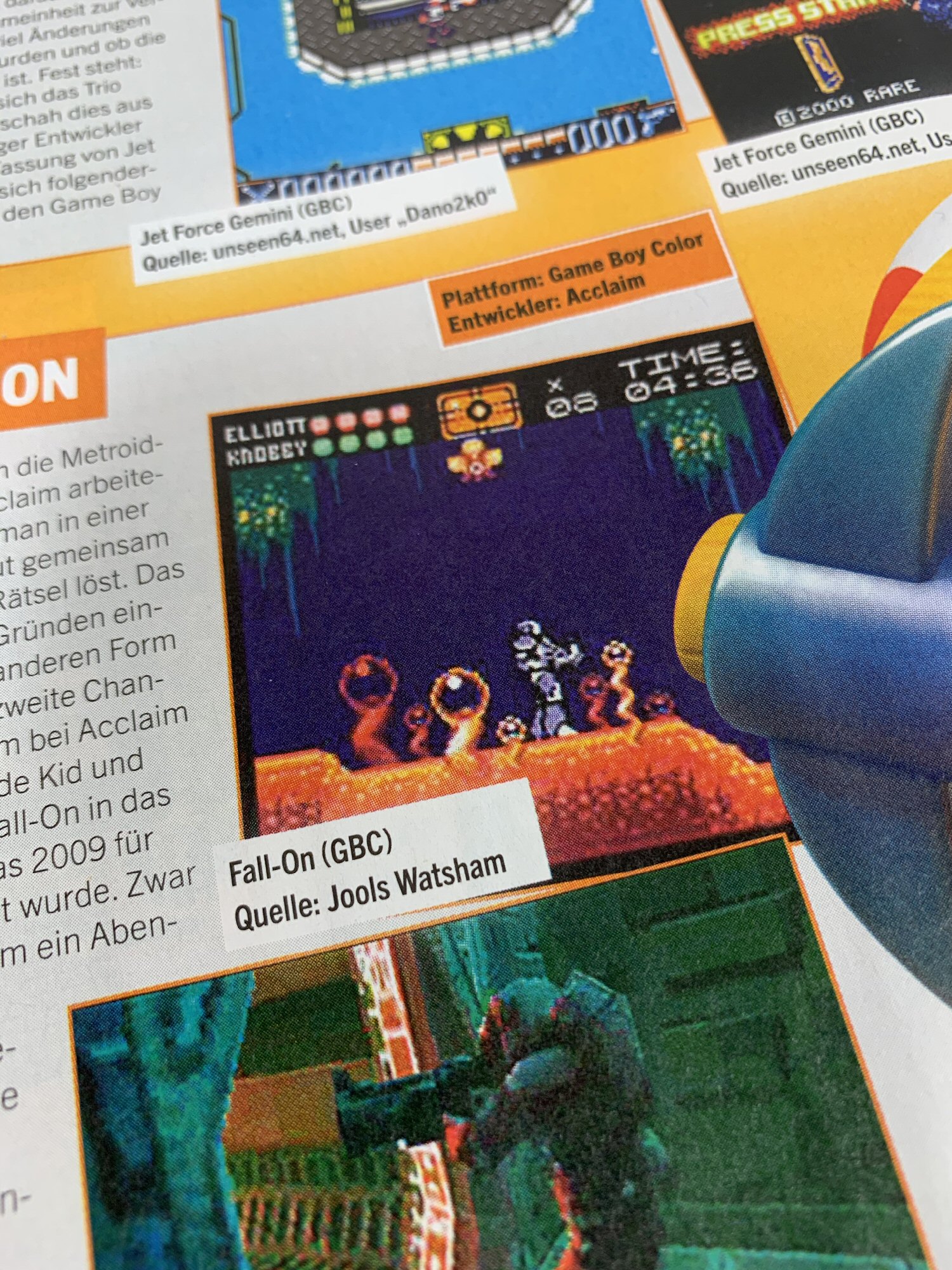 (pwc) Es war nicht anders zu erwarten: auch in der aktuellen Ausgabe 4/2021 der N-Zone wird an den Game Boy gedacht. Im Bericht „Toads Schatzsuche nach unveröffentlichten Nintendo-Spielen“ hat sich Autorin Katharina Pache von unseen64.net und dem Buch „Video games you will never play“ inspirieren lassen. Hier begegnen uns die beiden Game Boy Color Titel Jet Force Gemini und Fall-On/Moon. Den Programmieraufwand von Jet Force Gemini lagerte Rare an ein anderes Studio aus. Offiziell angekündigt wurde der Titel nie. Heute befindet sich der Prototyp des Spiels in den Händen eines Sammlers. Der Öffentlichkeit ist der Prototyp nicht zugänglich.