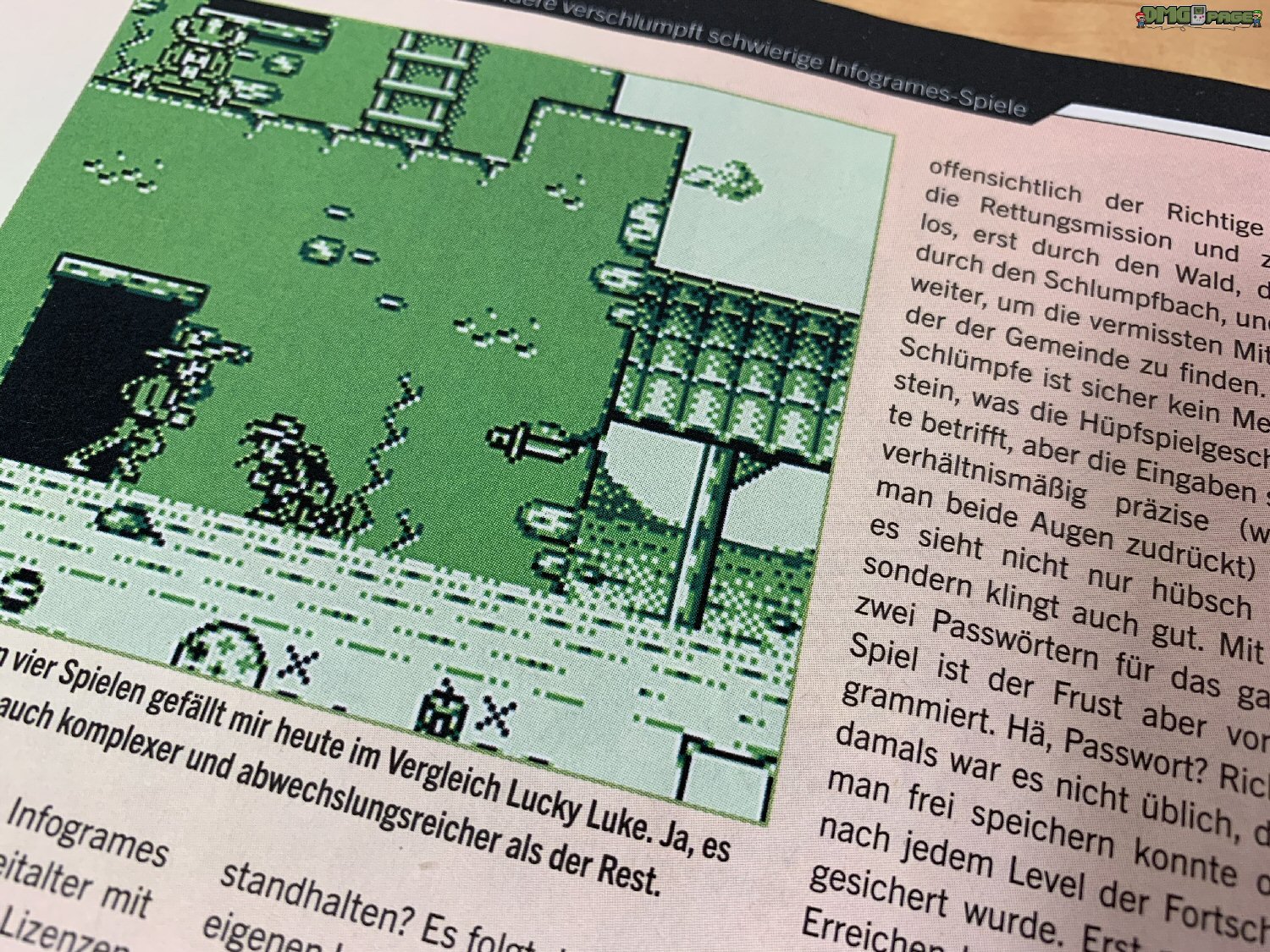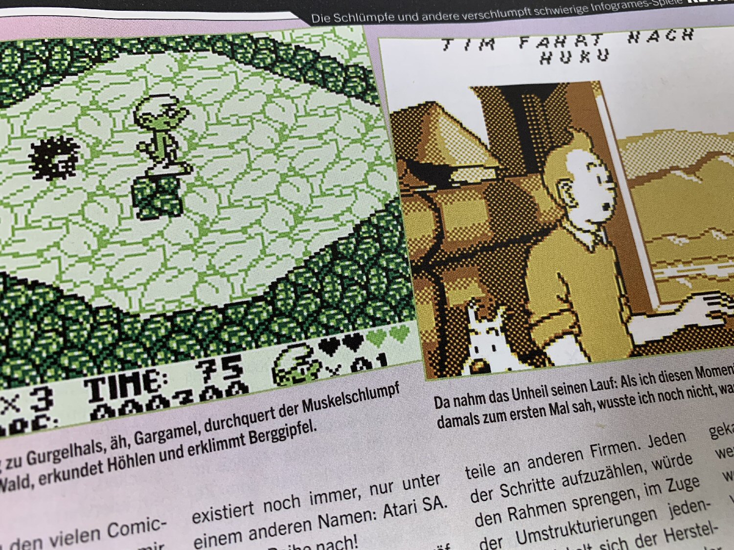Von Seite 14 machen wir einen Riesensprung auf Seite 80. Dort erwartet uns der (sehr persönliche) Bericht „Die Schlümpfe und andere verschlumpft schwierige Infogrames-Spiele“. Autorin Katharina erinnert sich an die Zeit, bevor man sich im Internet vorab über Spiele informieren konnte. Der Kauf war damals in jedem Fall einem Risiko ausgesetzt. Tim in Tibet war eines dieser Spiele, dessen Kauf sie bereute. Als Fan frankobelgischer Comicvorlagen, ist man aber auch leicht der Versuchung erlegen, sich ein Spiel zu seinen Comichelden anzuschaffen. Katharina führt uns im Schnelldurchlauf zu verschiedenen Stationen der Fa. Infogrames – bis hin zur Umbenennung in Atari SA und die Insolvenz in den USA.