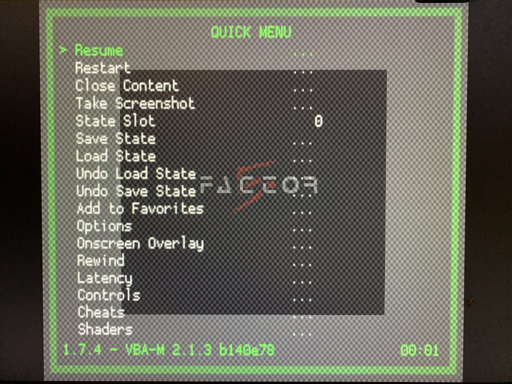 Die Skalierung der Spiele liegt bei 720p. Neben dem obligatorischen Firmware-Update, empfehle ich euch weiterhin eine Tastatur an den vorderen USB-Port anzuschießen. Denn nur so erreicht ihr mit F1 das sogenannte „Quick Menü“. Navigiert hier direkt einmal zu den Optionen. Hier könnt ihr beispielsweise Einfluss auf die Game Boy Farbpalette nehmen, die emulierte Hardware wählen oder auch einstellen, ob Super Game Boy Rahmen angezeigt werden sollen. Doch das war noch nicht alles. Zig weitere Einstellungen stehen euch hier zur Verfügung. Damit ihr nicht jedes mal wieder auf eine Tastatur zurückgreifen müsst, könnt ihr das Menü auch via Controller öffnen. Hierfür sind folgende Einstellungen nötig: Settings > Input > Menu Toggle Gamepad Combo > und dort eine Wahl treffen. Ich habe die Funktion auf die Buttons Start + Select gelegt. Im Anschluss wechselt ihr in das „Main Menü“ und wählt dort unter Configurations den Punkt Save Current Configuration aus.