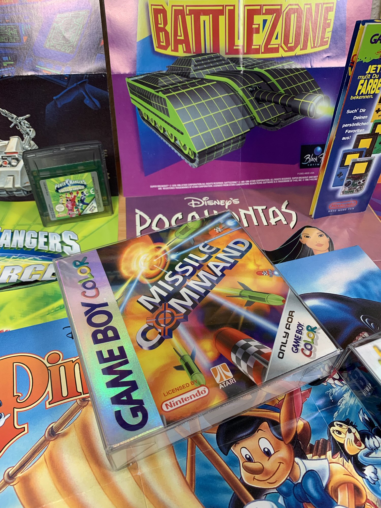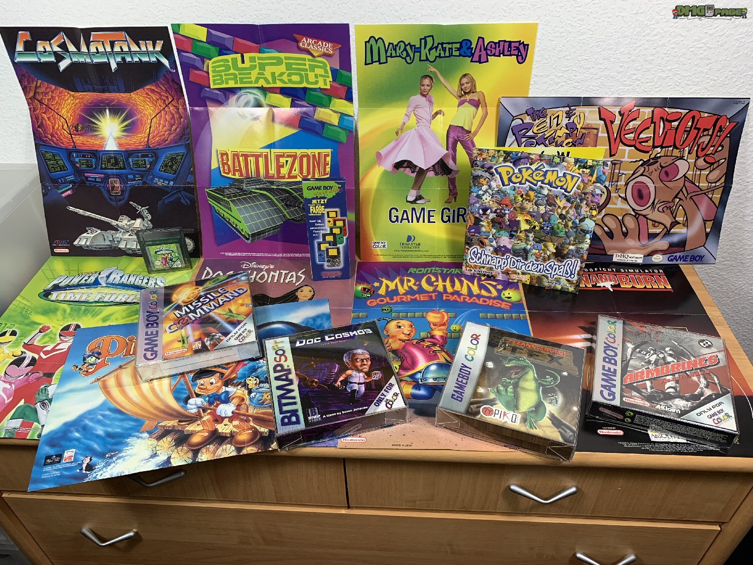 (pwc) Die Ausbeute in den Monaten Juli und August ist ziemlich übersichtlich: drei Game Boy Color Spiele, zwei Homebrew-Titel und eine Menge Papierkram. Neben der genialen Pokémon-Broschüre (stelle ich in einem separaten Beitrag vor) und dem Werbeflyer, der den farbigen Game Boys (Special-Edition) beilag, haben es auch einige Posterbeilagen in die Sammlung geschafft.