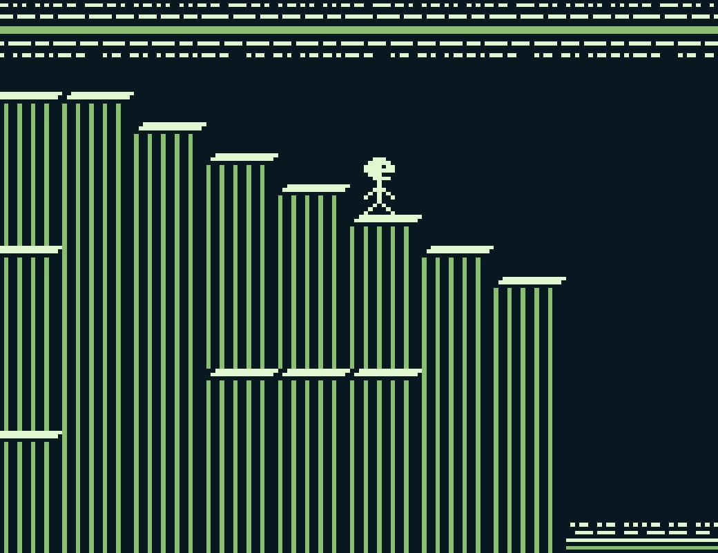 Mit der B-Taste lasst ihr die Figur springen. Wie weit ihr springt, bestimmt ihr durch die Druckintensität. Ihr werdet euch in etlichen Situationen wiederfinden, in denen Fingerspitzengefühl gefragt ist und ihr genau abschätzen müsst, wie weit ihr die Taste drückt.