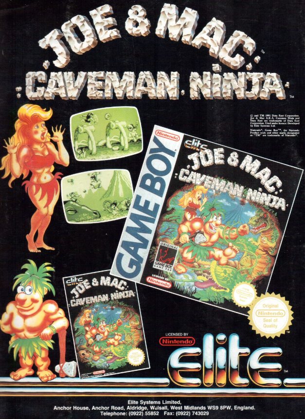 (pwc) Diese Werbung ist ganz schön steinzeitlich: Joe & Mac, die Caveman Ninja, mischen ihre Umgebung auf. Dabei verzichtet sie auf markige Sprüche und lässt einfach Bilder sprechen: eine kreischende Blondine im Hintergrund des Spielecovers ist gefesselt und will befreit werden. Gleichzeitig versucht Joe sich aus den Fängen einer fleischfressenden Pflanze zu befreien. Na wenn das mal nicht das Interesse der Kids im Jahr 1993 geweckt hat^^