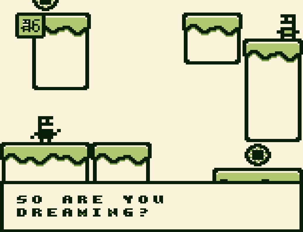 Die Traumwelt besteht aus zwei Leveln. Über etliche Plattformen gilt es jeweils sechsmal deinen Buddie zu befreien, der scheinbar multipliziert wurde. Da manche Plattformen weiter auseinanderliegen als du springen kannst, überwindet man einige Strecken via Teleporter. Insgesamt stehen dir für die Rettung deines Kumpels 60 Sekunden zur Verfügung. Schaffst du es in der Zeit dein Ziel zu erreichen, wachst du aus dem Traum auf. Da du aber weiterhin müde bist, drückst du auf dem Wecker den Schlummern-Knopf und begibst dich augenblicklich ins zweite Level.